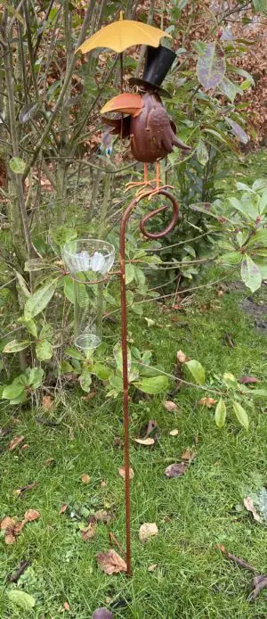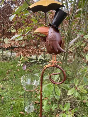 Regenmeter vogel, Raaf met paraplu, hoed en bril RM165a