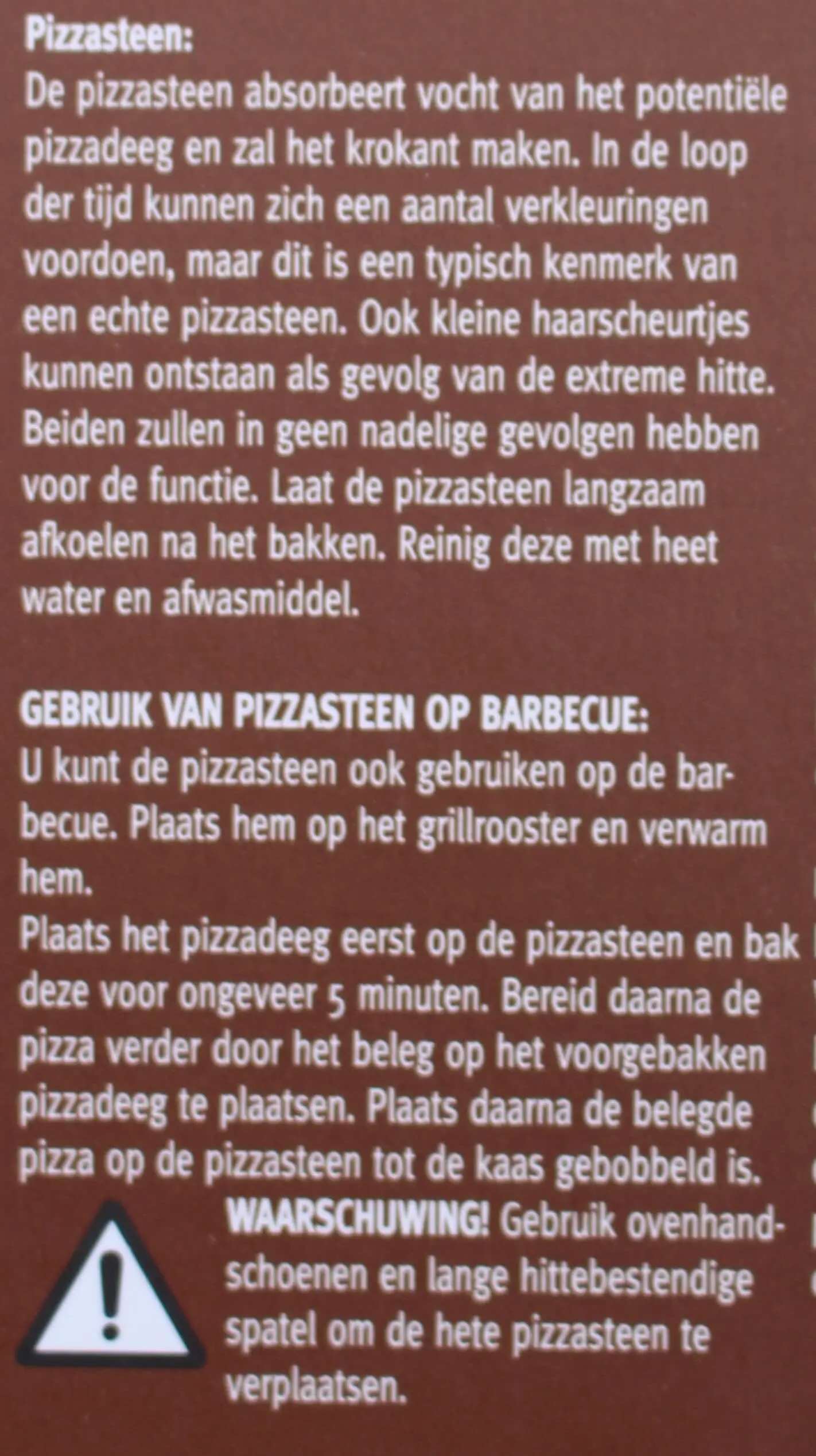 De steen warmt de pizza gelijkmatig op en onttrekt vocht uit het pizzadeeg.