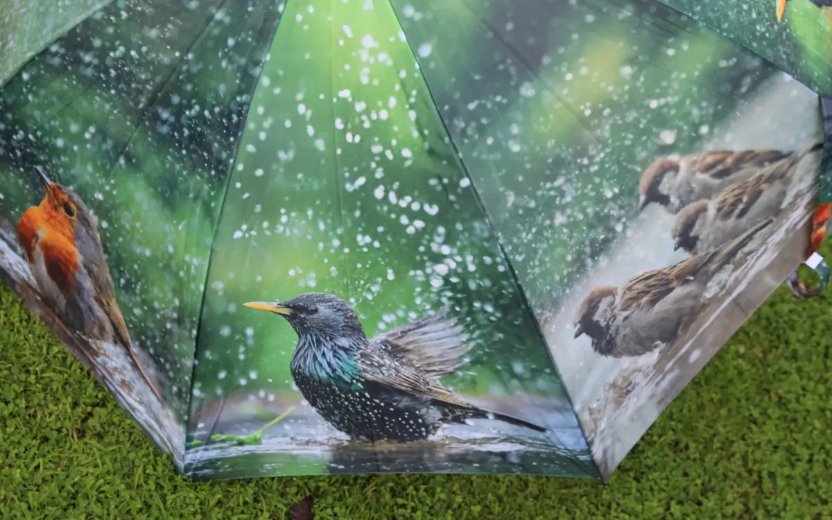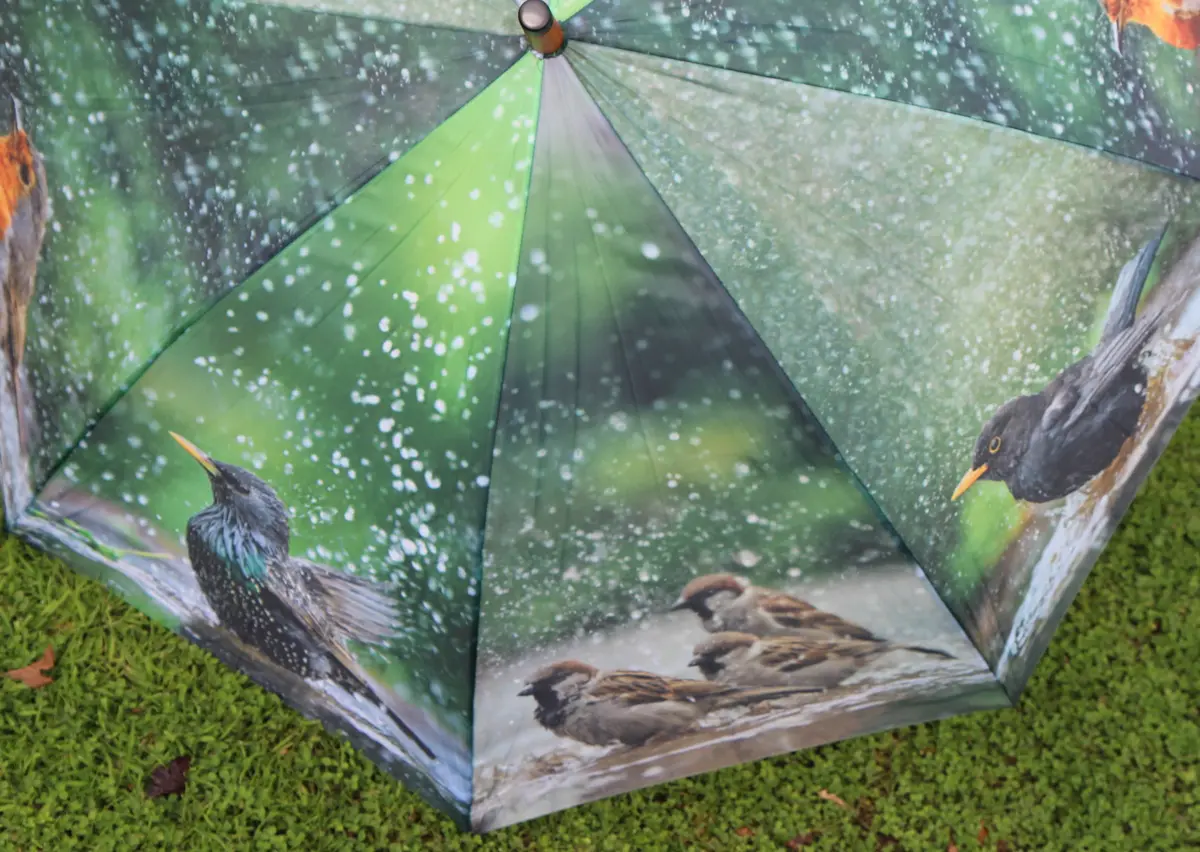 paraplu met badende tuinvogels