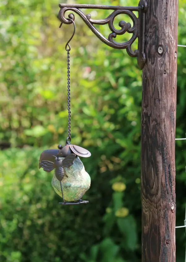 De haak is donkerbruin van kleur met wat zwarte accenten.