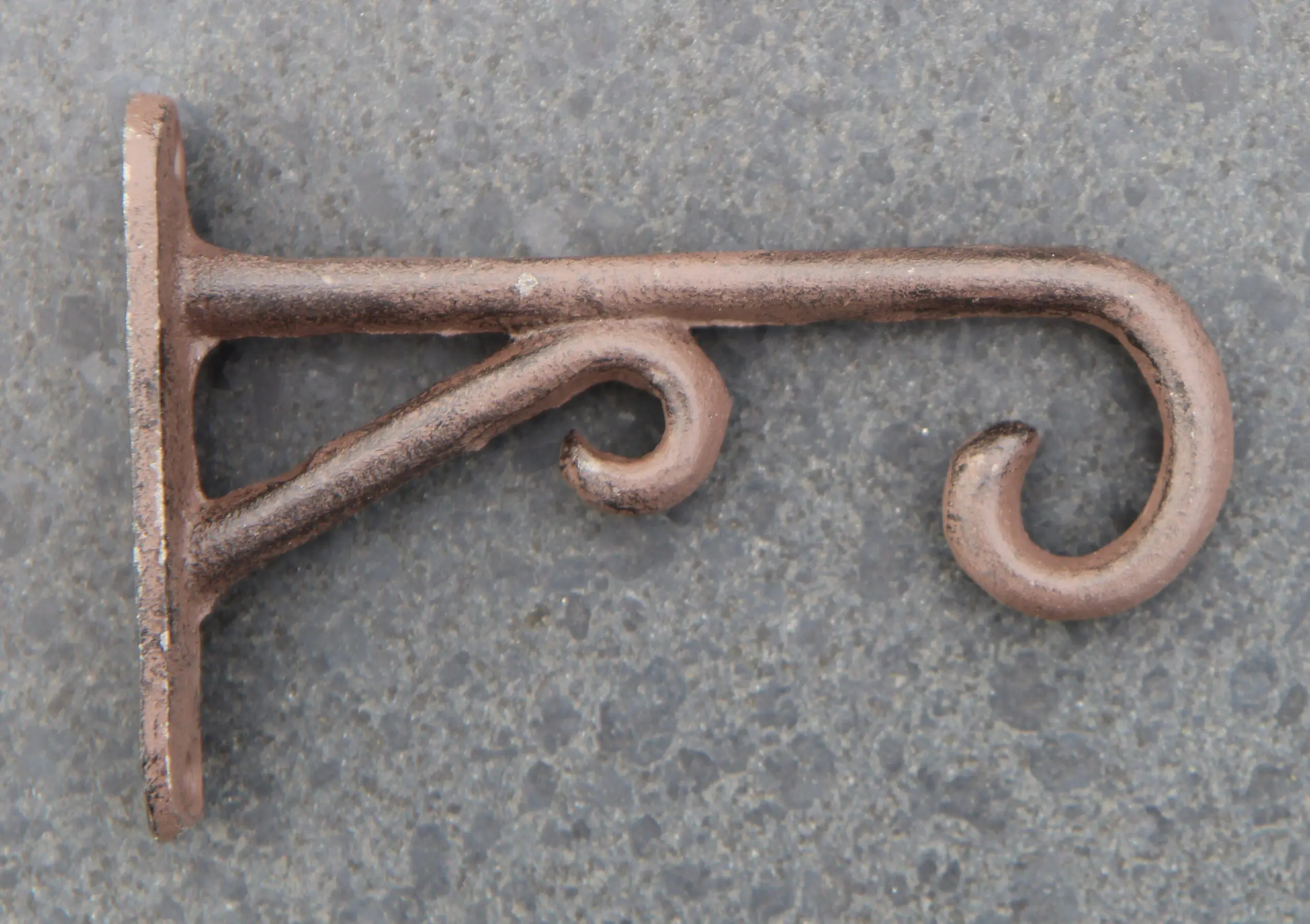 Het heeft een ruime krul aan uiteinde van de haak, aan de kleine krul zou ook nog iets gehangen kunnen worden.