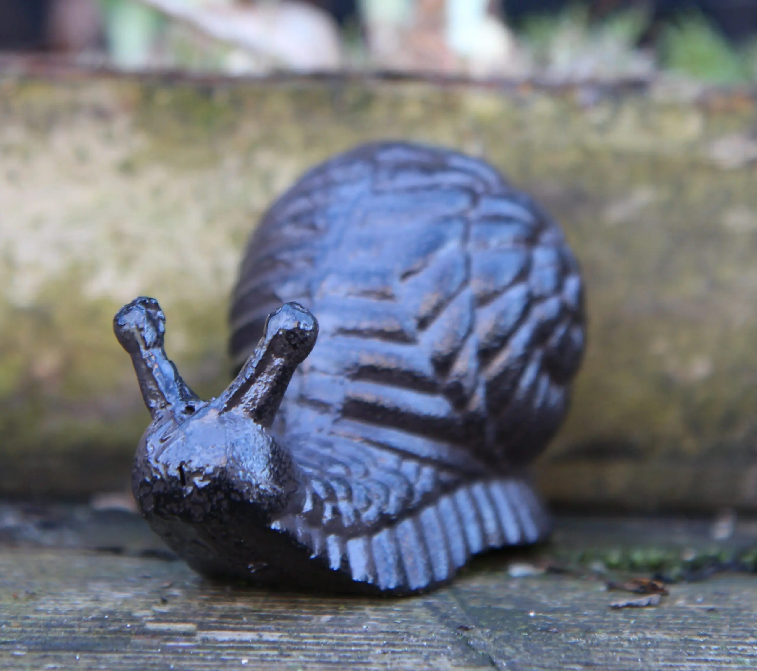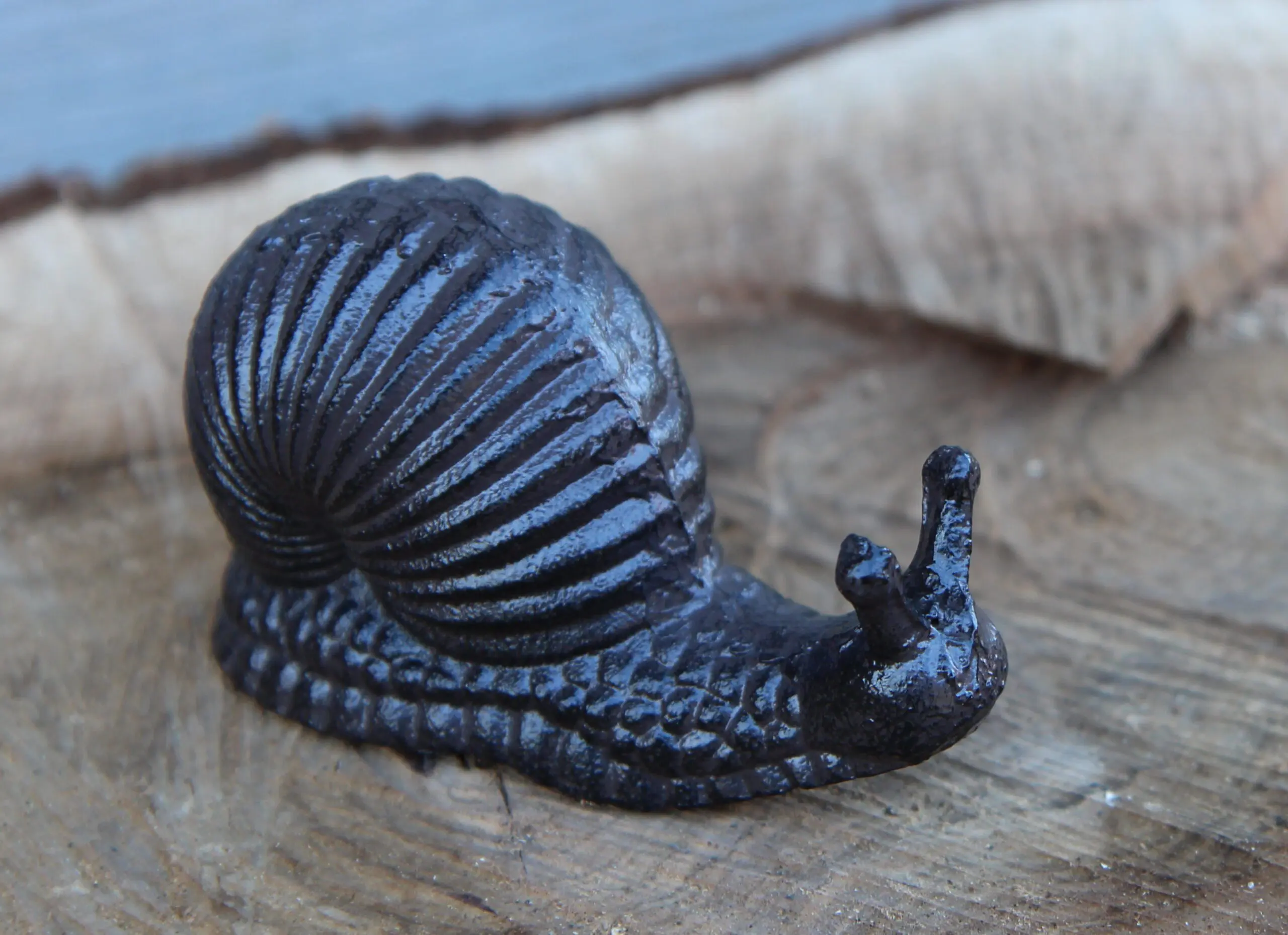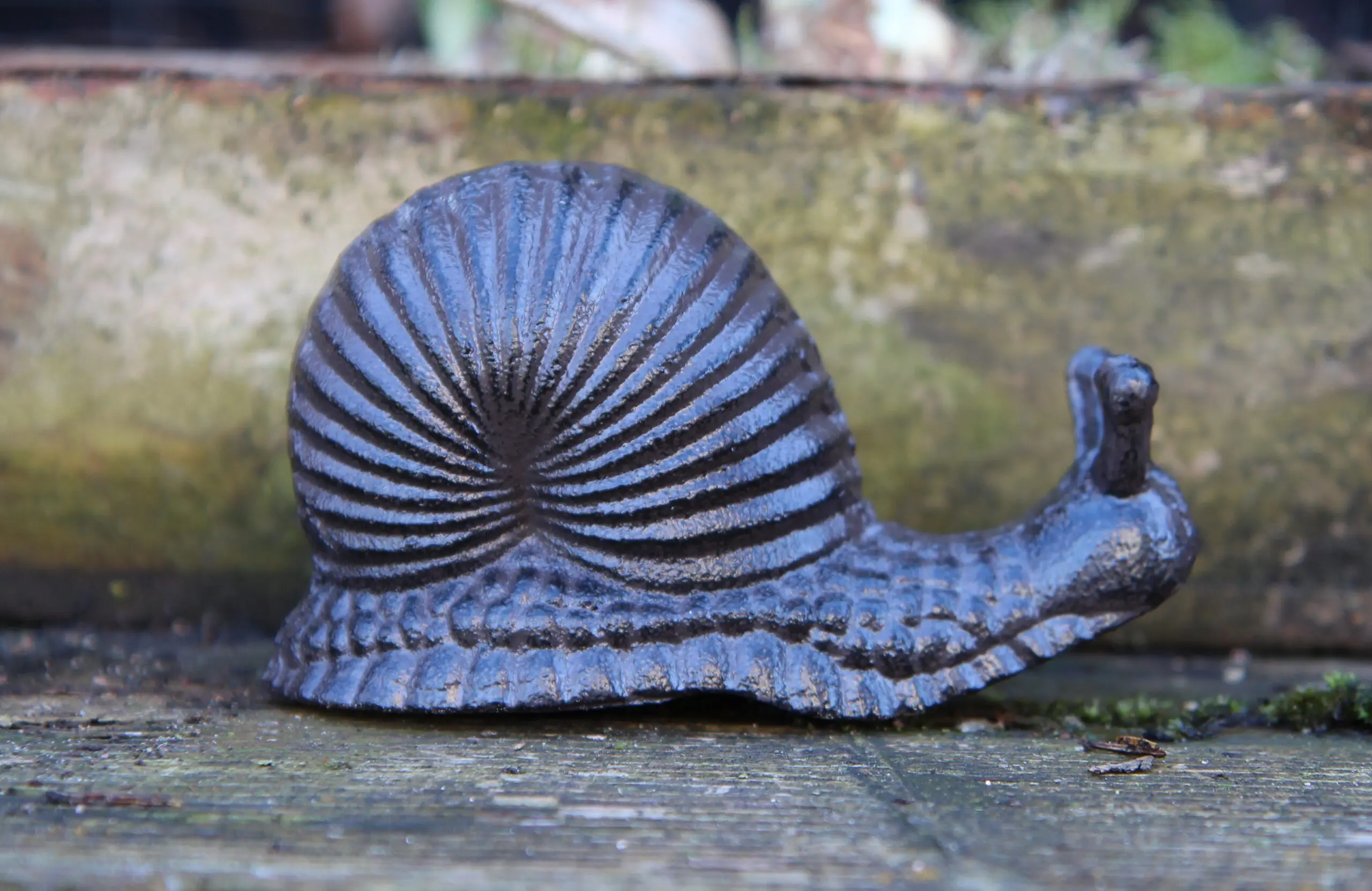 Een gietijzeren decoratieve slak.