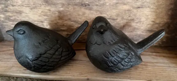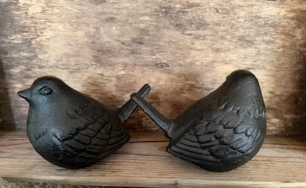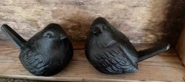 setje van 2 gietijzeren vogeltjes donkerbruin