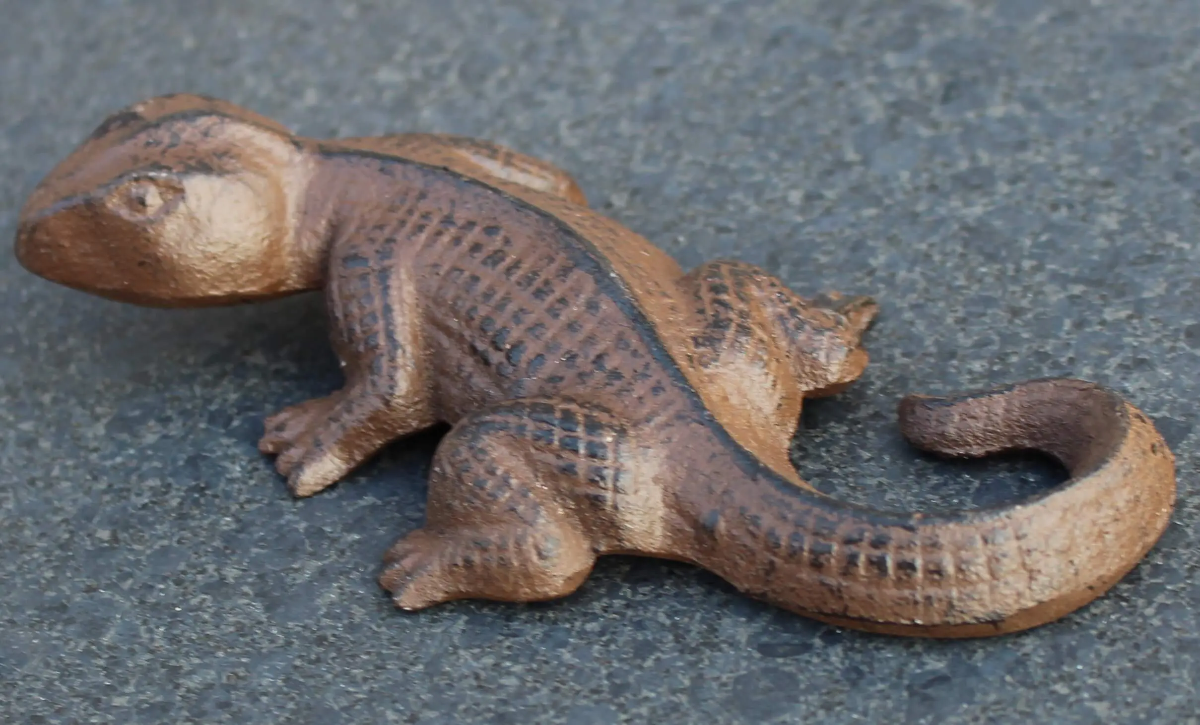 Het is donkerbruin van kleur met wat zwarte accenten.