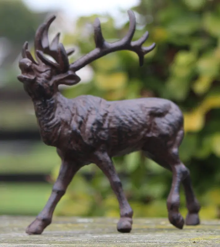 Dit mooie, decoratieve, zwaar gietijzeren hert- eland, is een echte “blikvanger”