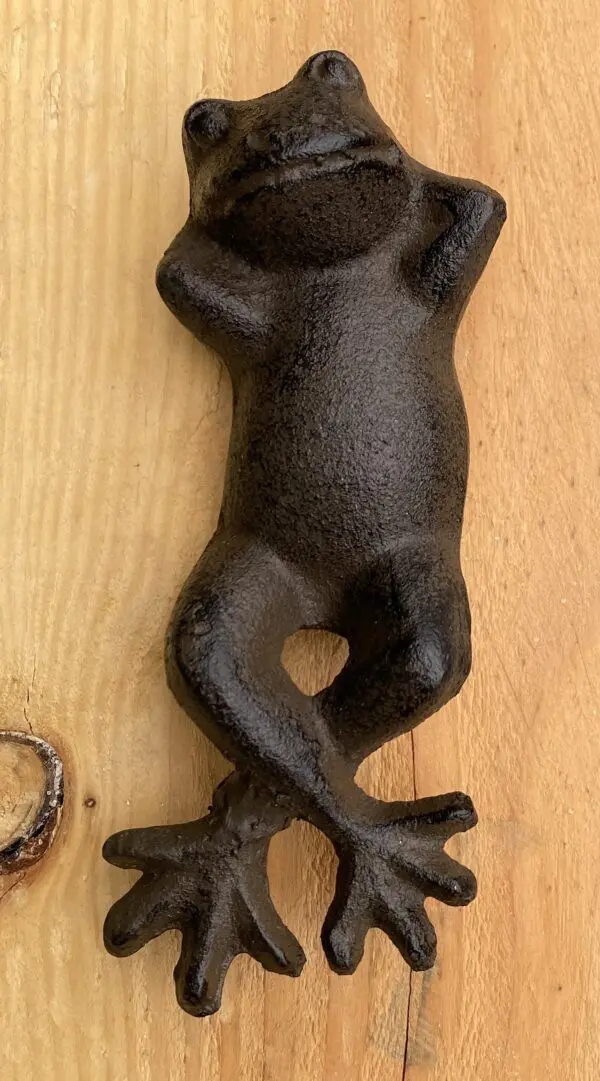 Grappige decoratief gietijzeren liggende kikker.