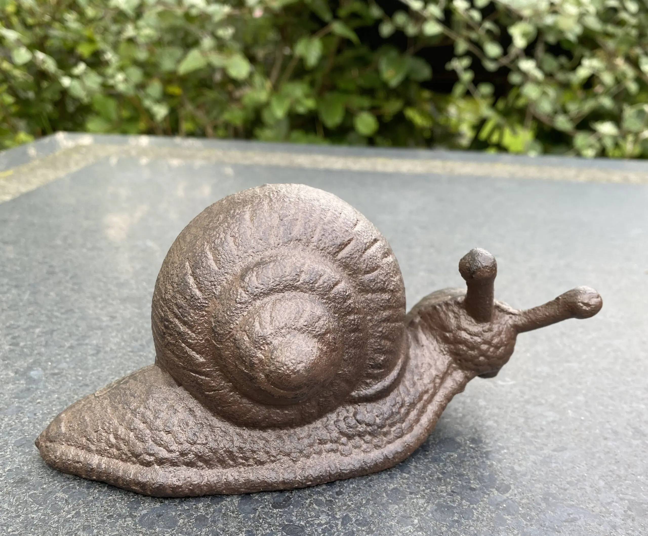 Een gietijzeren decoratieve slak.