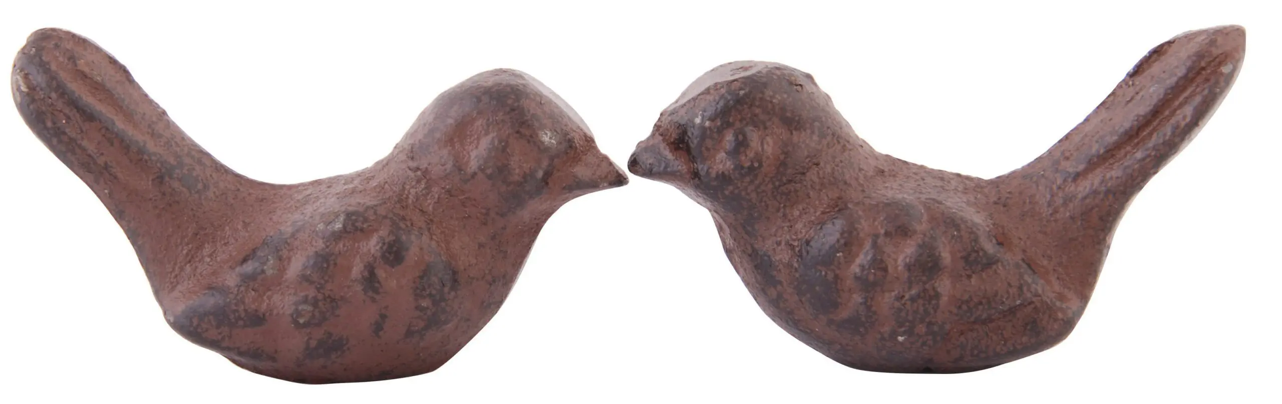 2 kleine vogeltjes van gietijzer in de kleur donkerbruin.