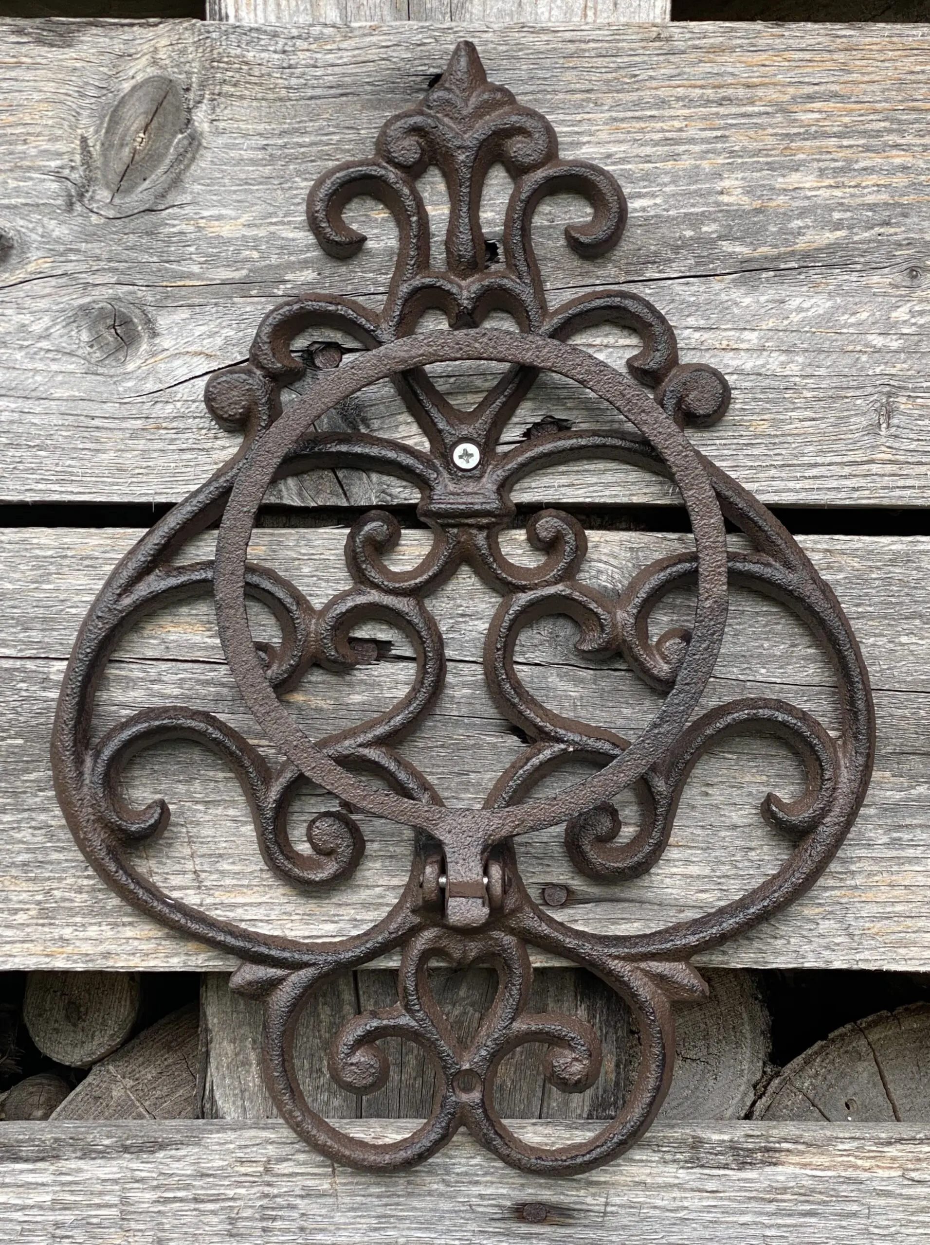 Sierlijke gietijzeren frame/ raamwerk met ring voor een bloempot.