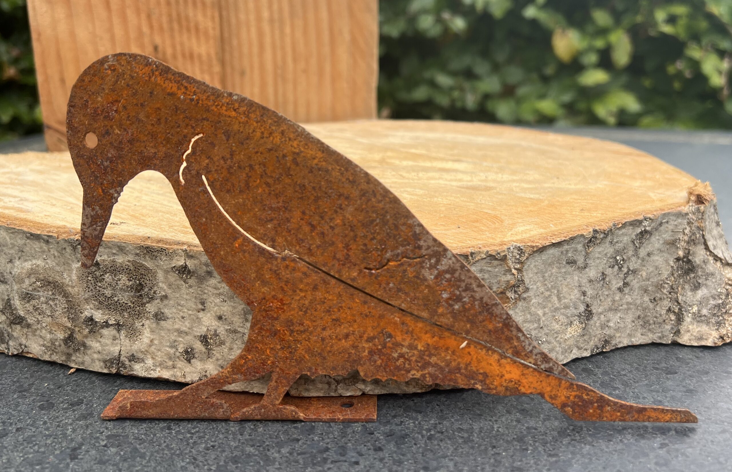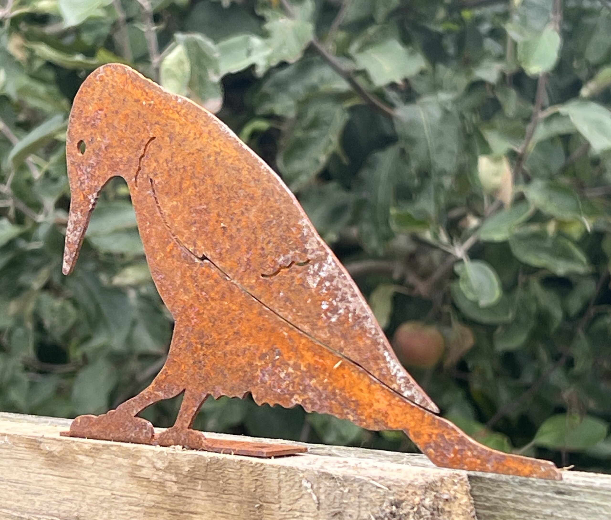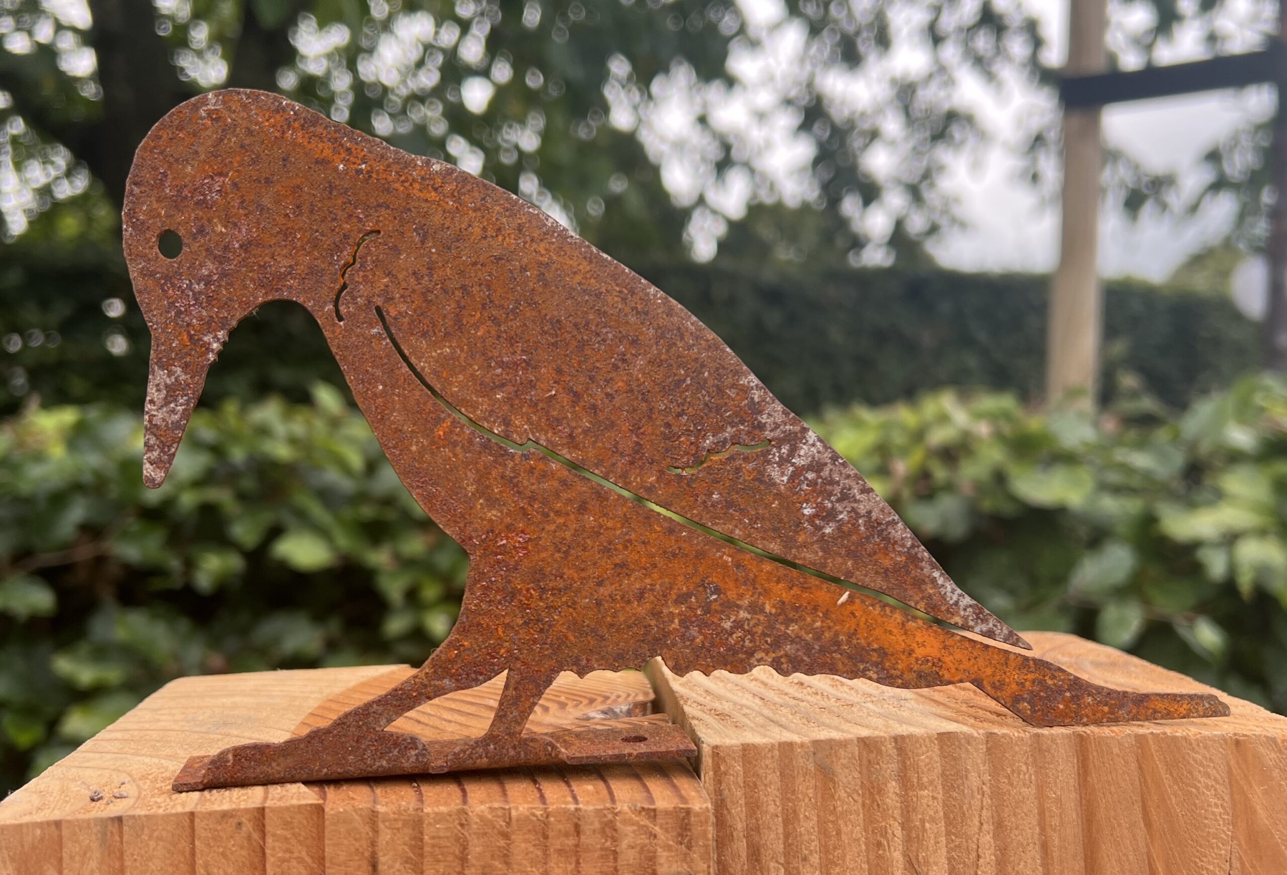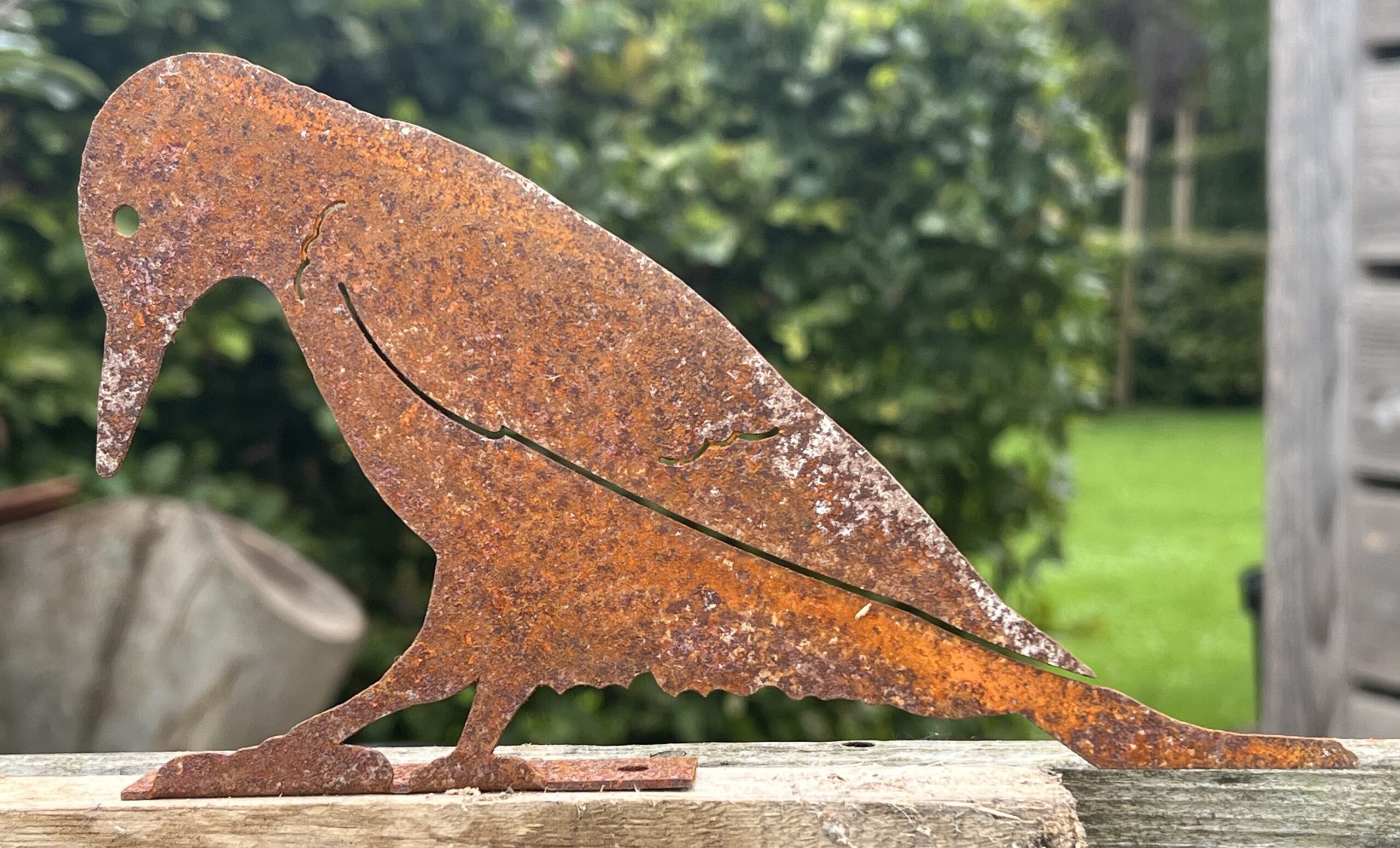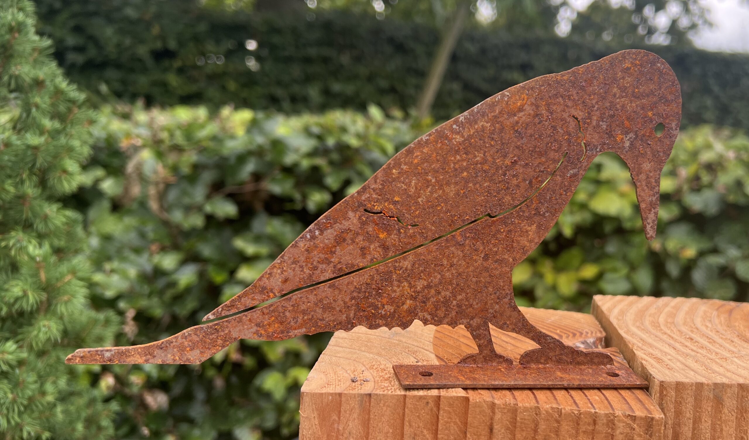 Silhouet specht schroefbaar op schutting, roestig metaal MV124