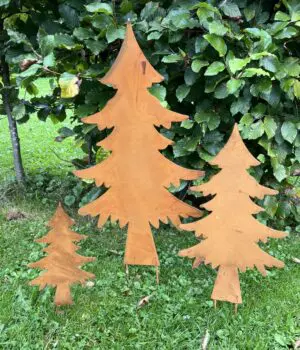 roestige metalen tuinsteker kerstboom roestkleurig