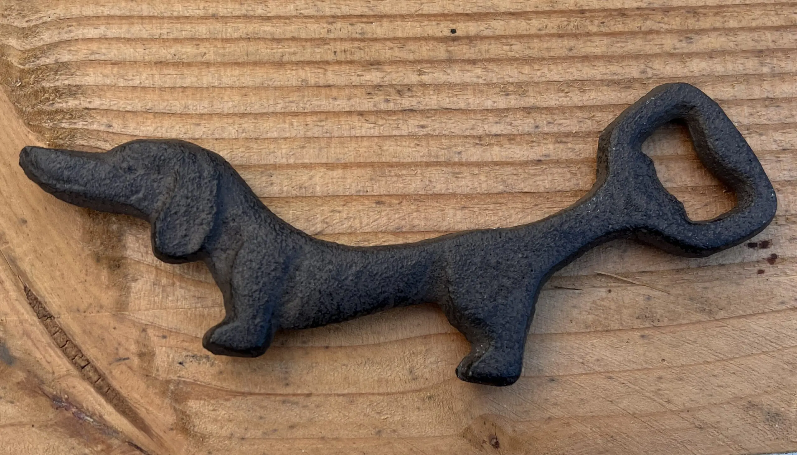 gietijzeren fles opener teckel donkerbruin
