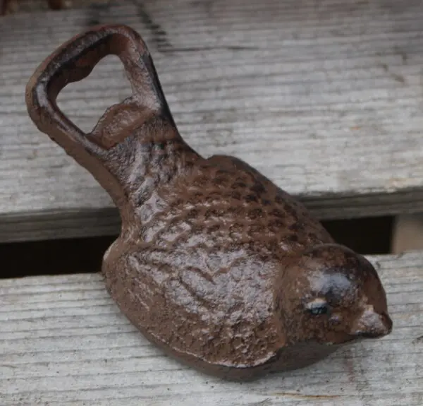 Mooie gietijzeren flessenopener in de vorm van een vogeltje.
