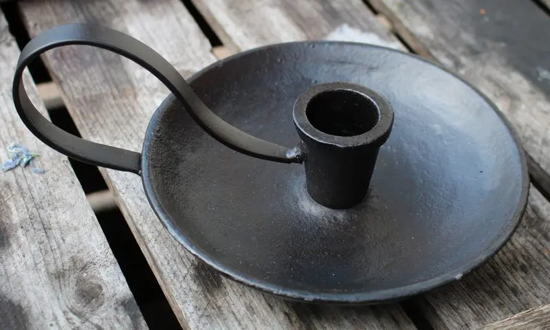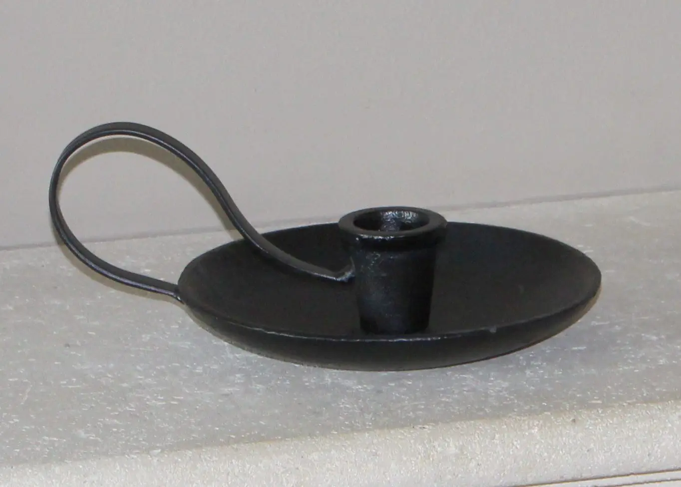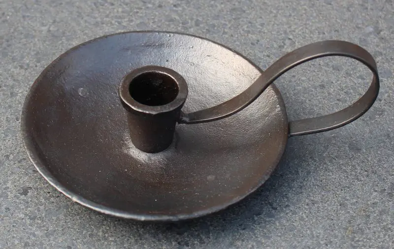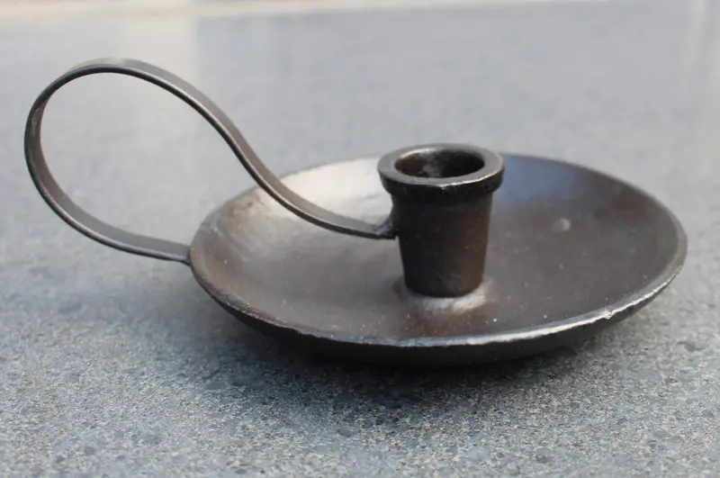 Mooie zwarte gietijzeren kandelaar met oor.