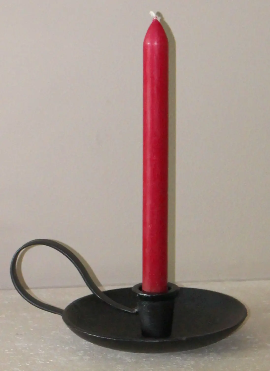 De houder voor de kaars loopt wat taps toe, deze is geschikt voor “normale” kaarsen.