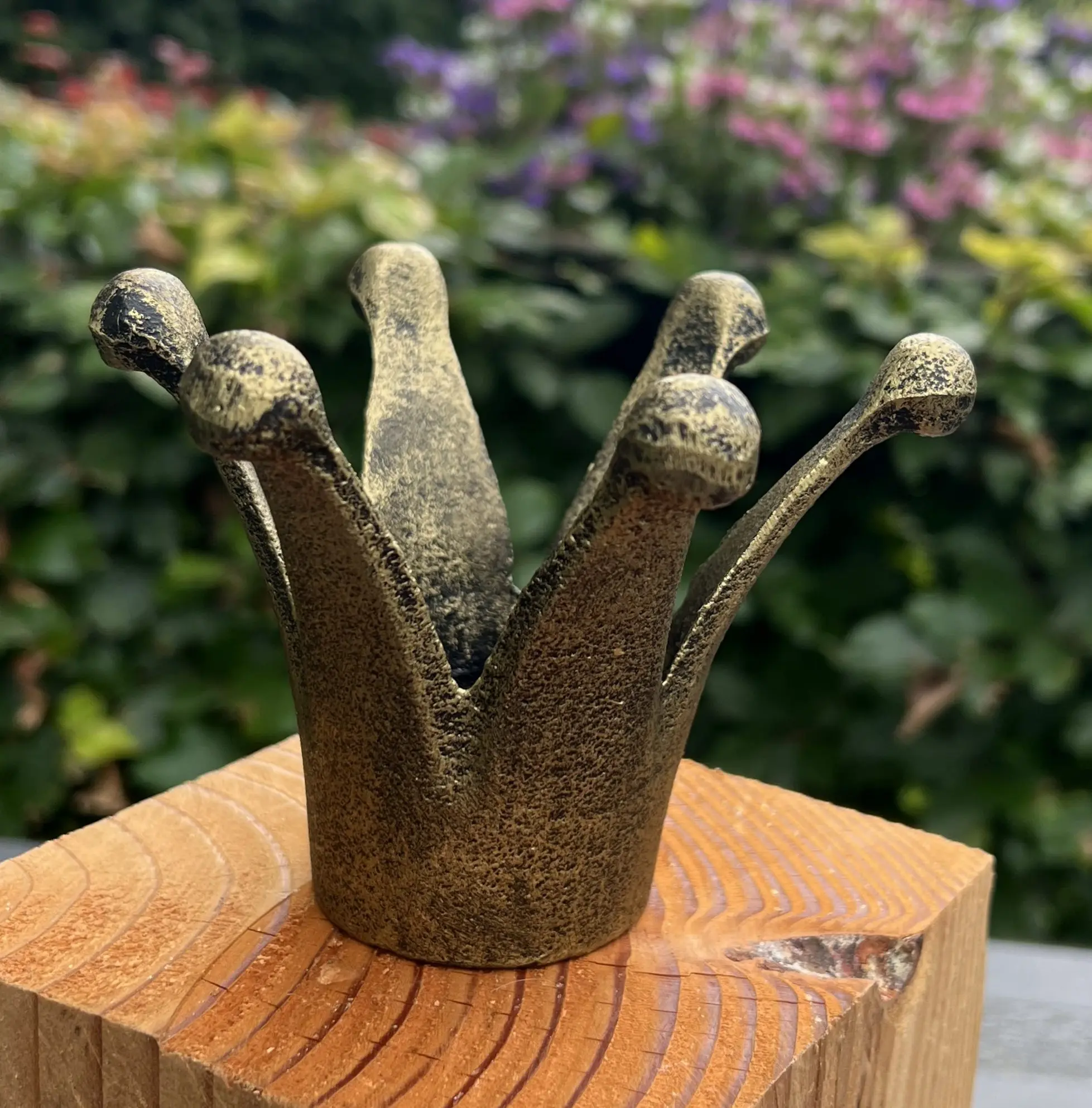 gietijzeren kroon als waxinelichthouder goudkleurig