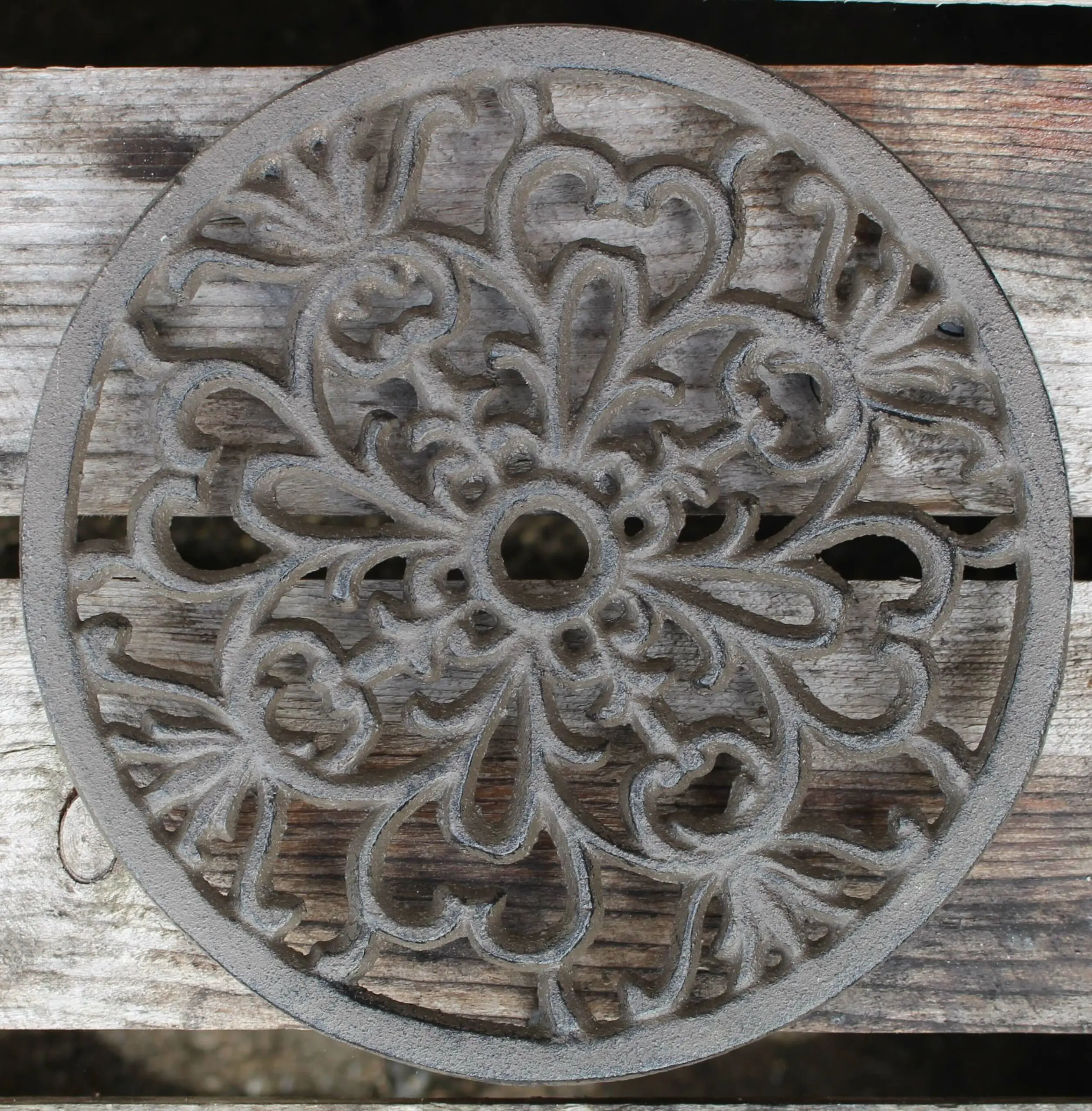gietijzeren ronde onderzetter 17cm donkerbruin
