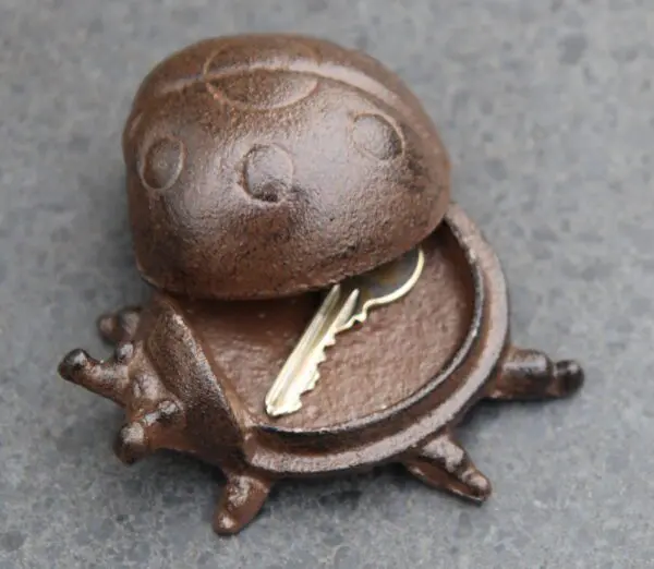 Een gietijzeren decoratieve sleutel verstopdoosje lieveheersbeestje.