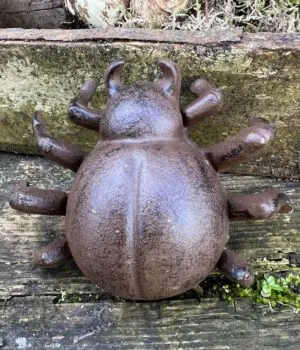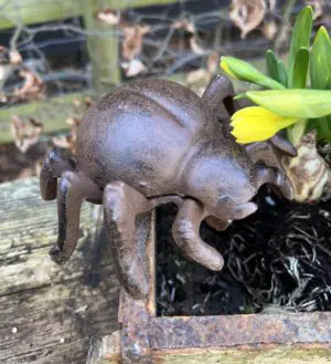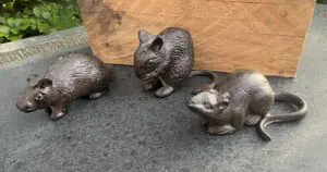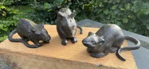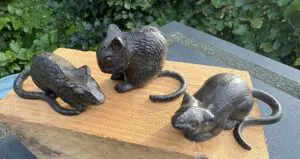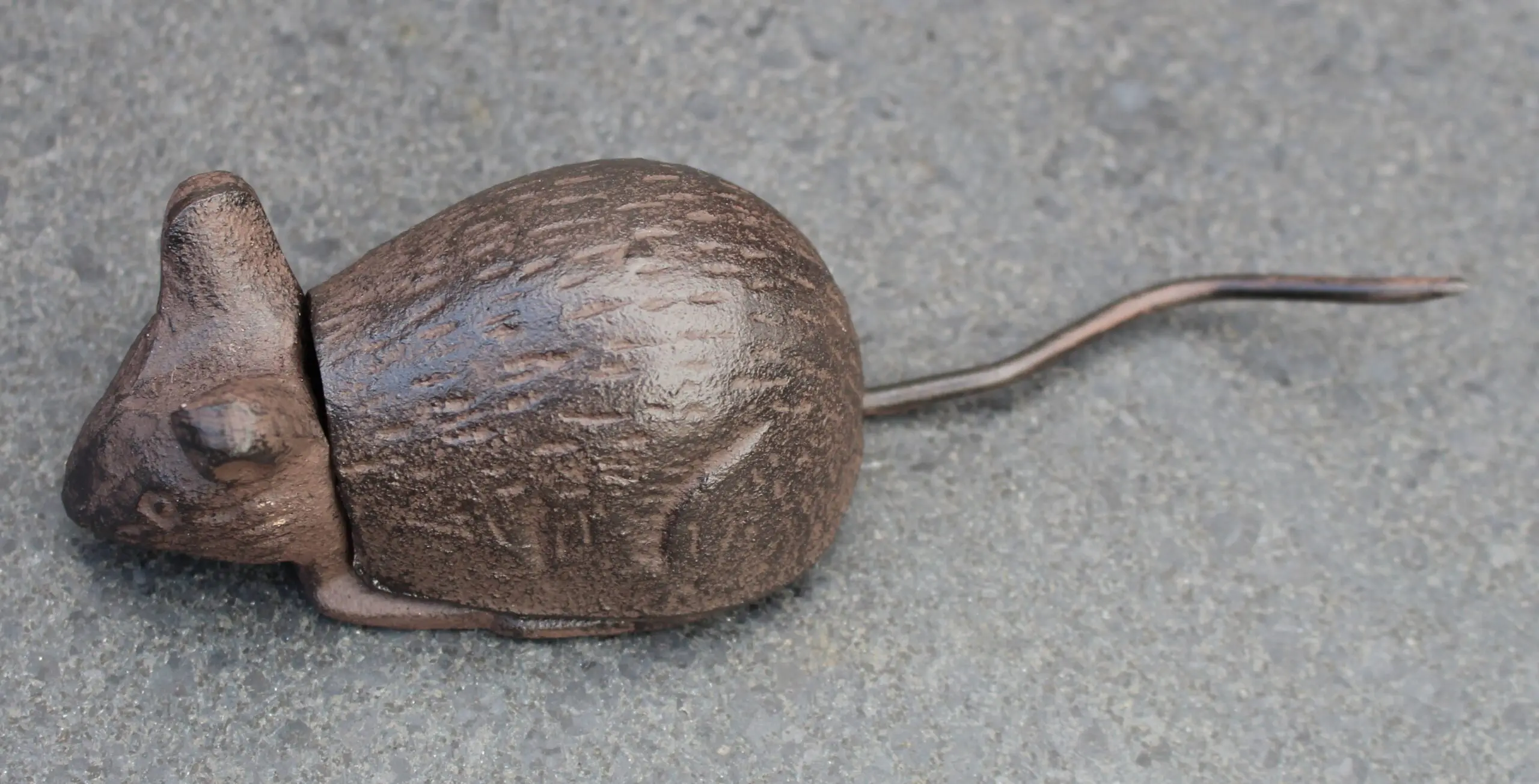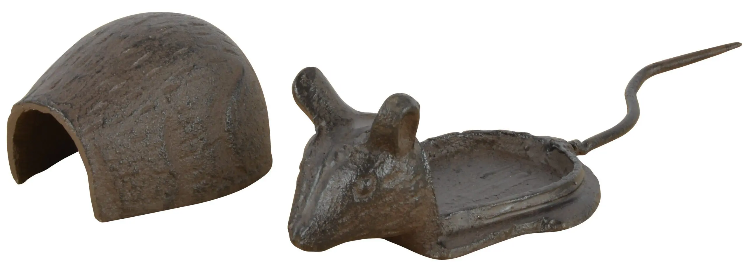 Een gietijzeren decoratieve sleutelverstopdoosje muis.