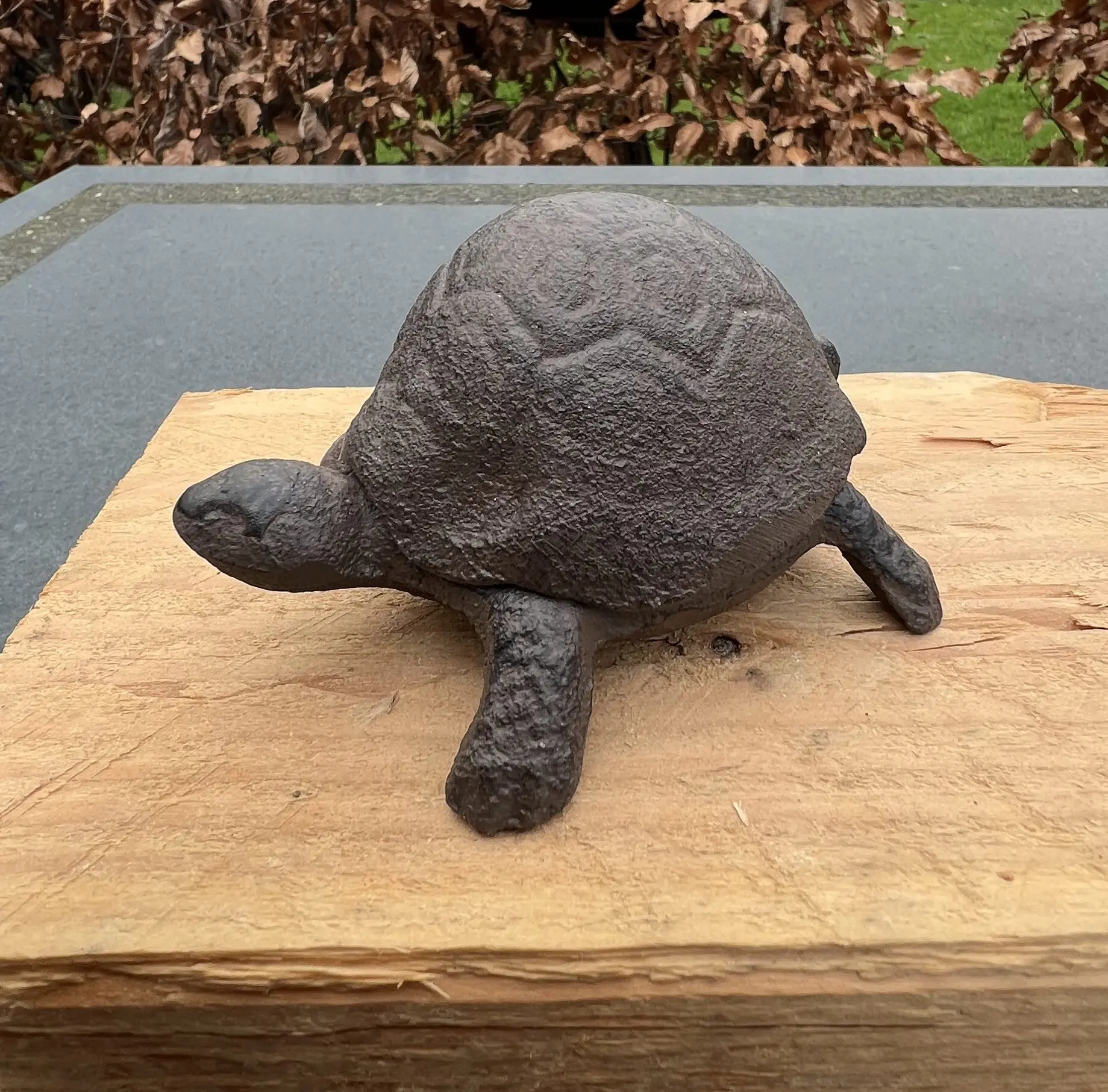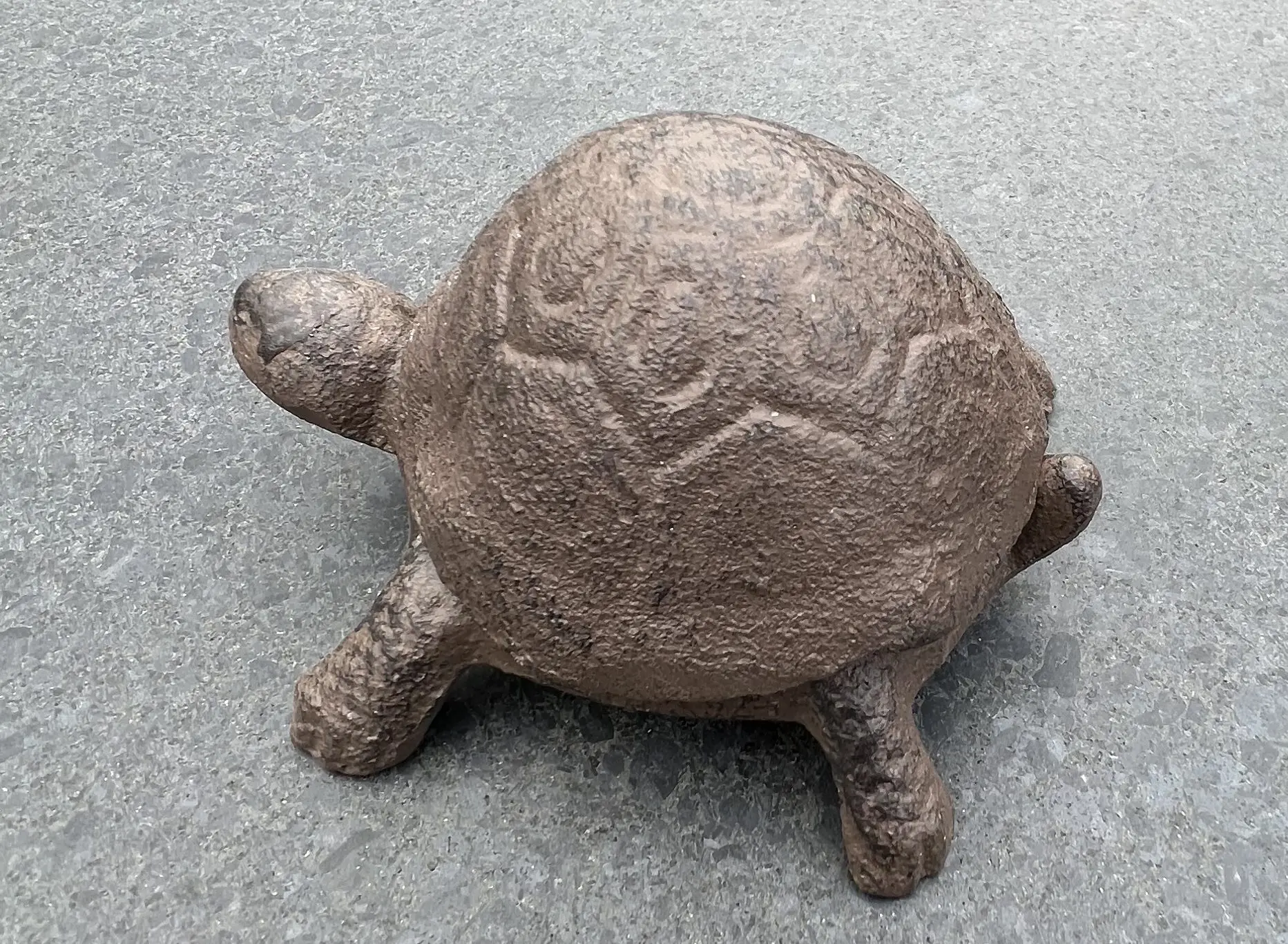 Een grappig antiek gietijzeren decoratieve schildpad.