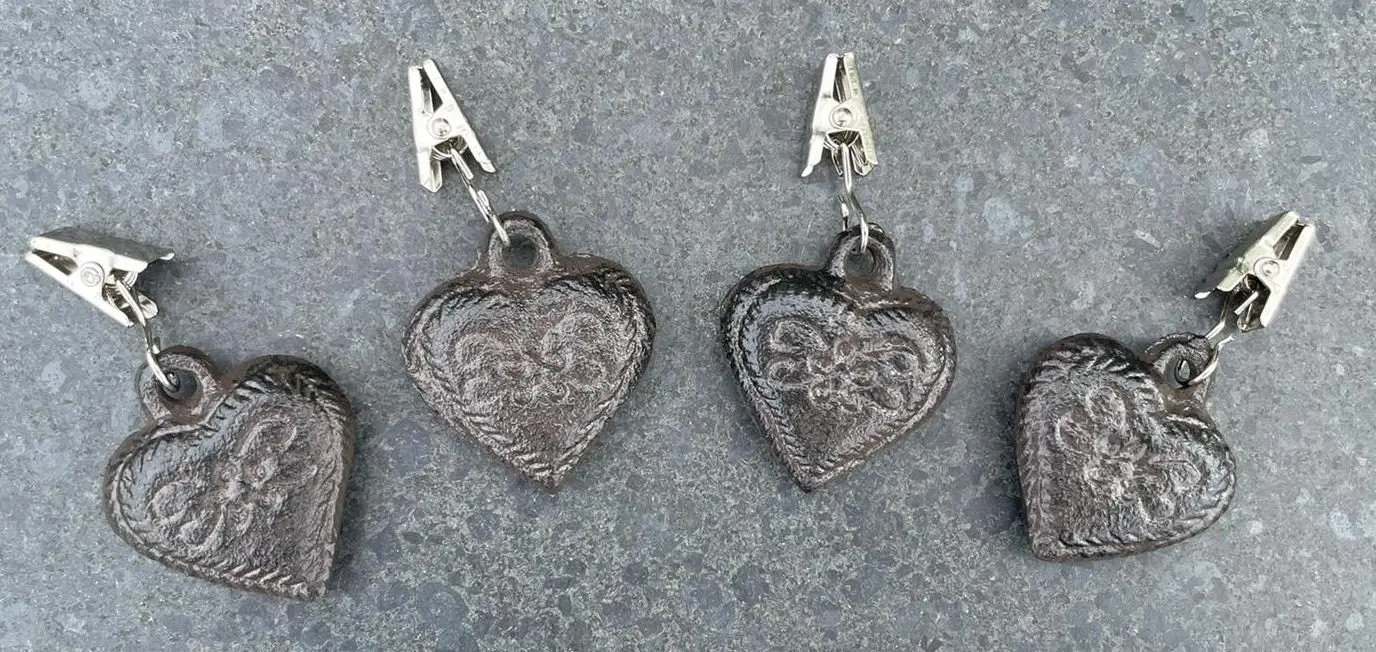 set van 4 gietijzeren tafelkleedgewichtjes hart donkerbruin