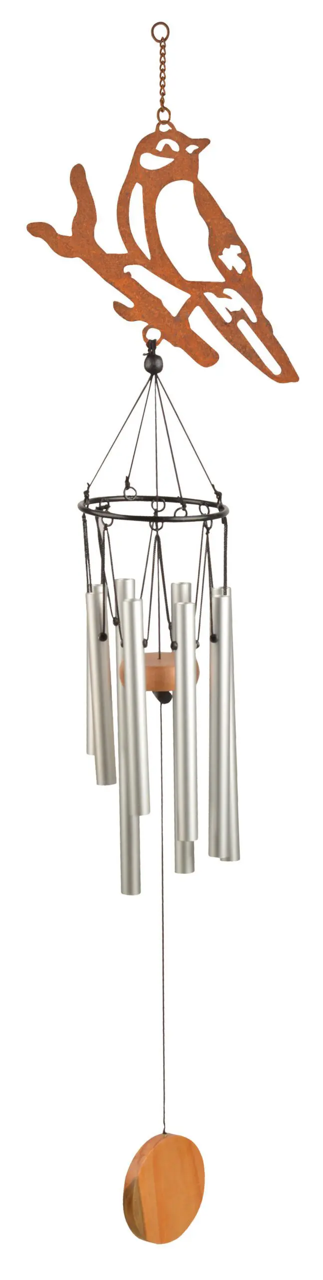 Metalen windgong koolmees roestig en 8 aluminium buisjes