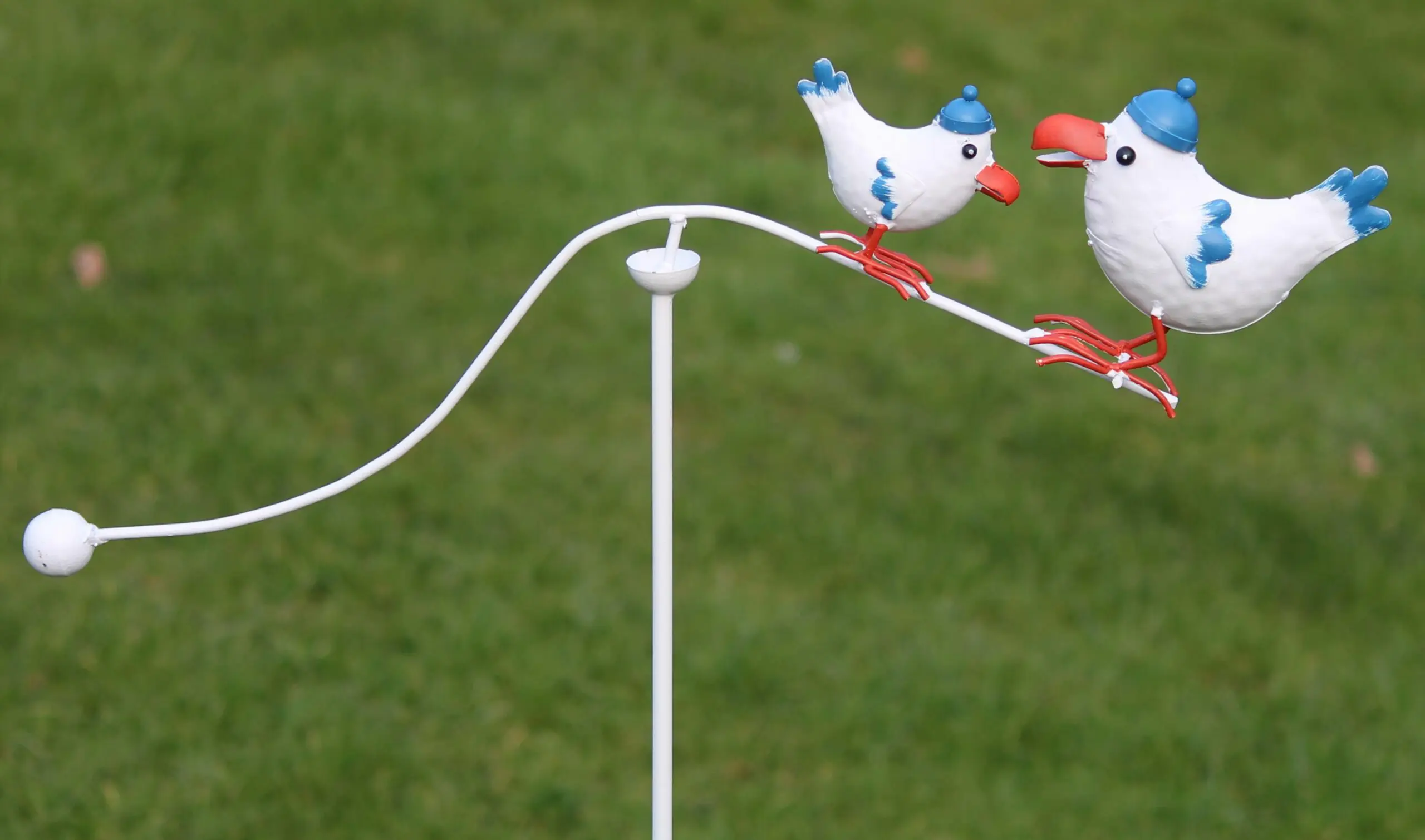 Aan één kant zitten de 2 vogels, aan de andere kant een contra gewicht.