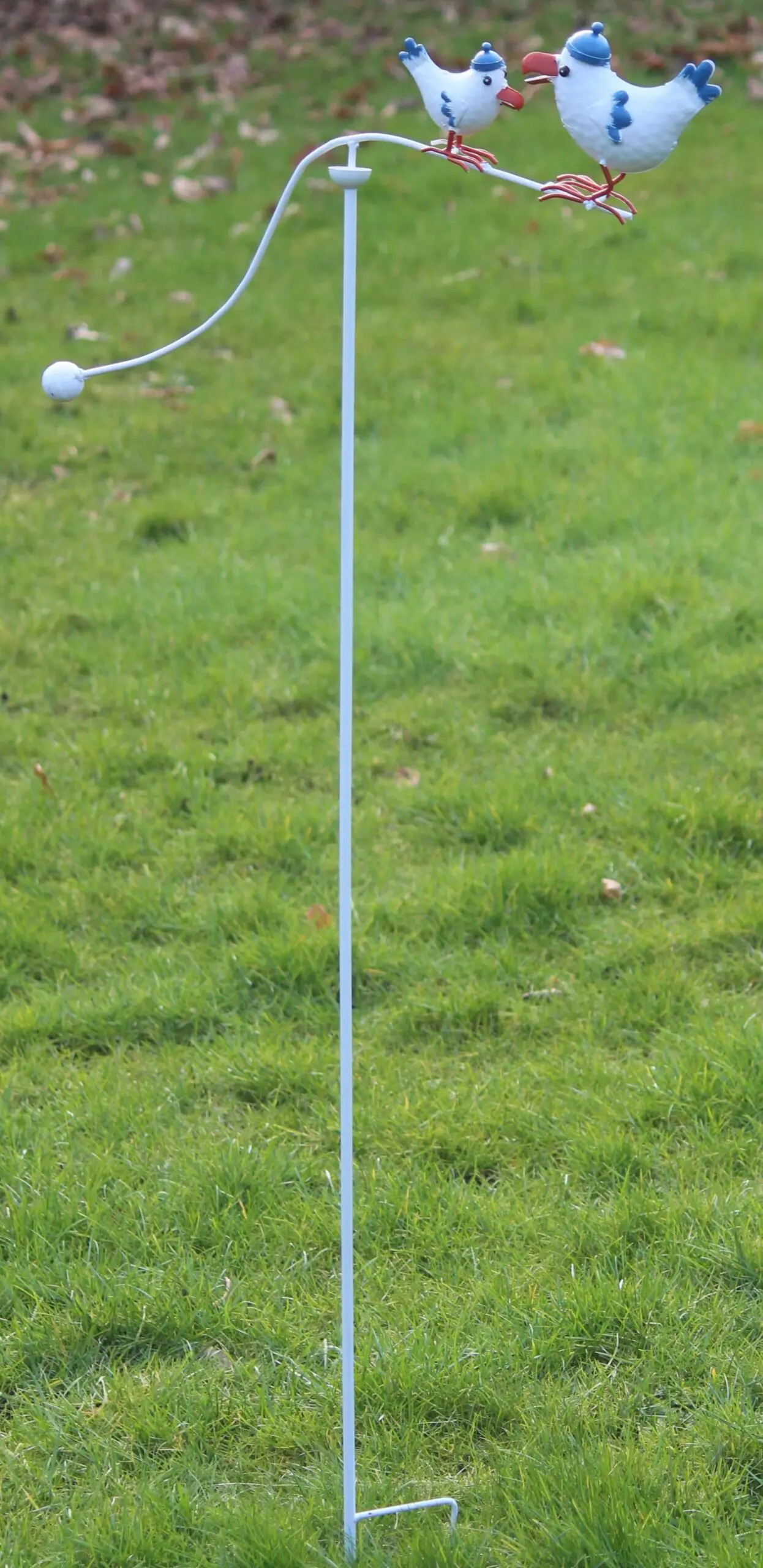 metalen windspel met 2 meeuwen vogels wit, blauw en oranje