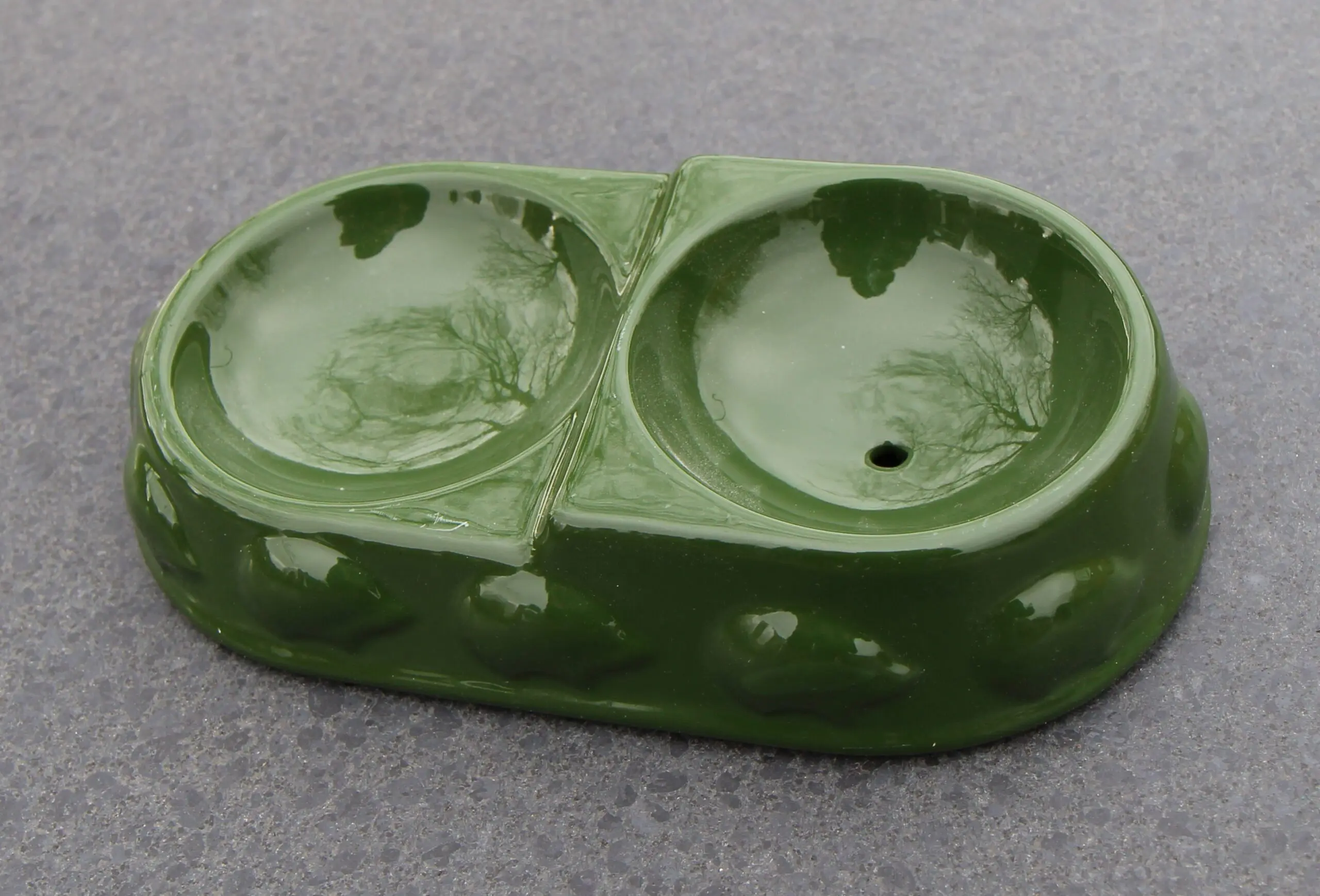Voederschaal en drinkschaal voor egel, keramiek, groen WA64