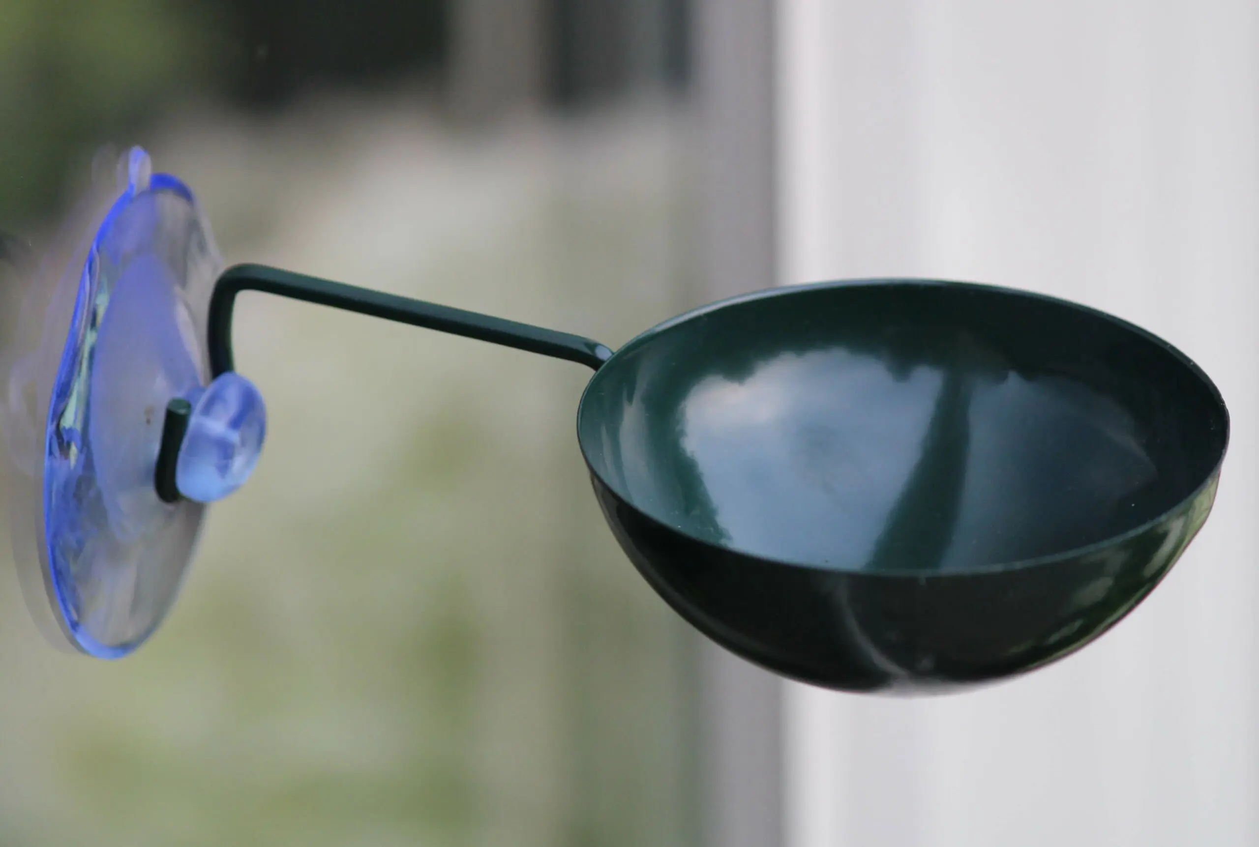 Het voederbakje kan met een zuignap aan het raam bevestigd worden.