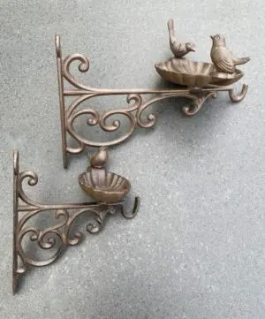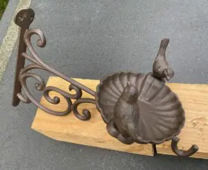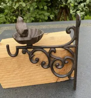 Wandhaak met vogelschaal en vogel, gietijzer VB163
