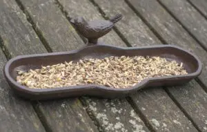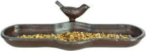 Mooi, trendy design hartvormige vogelschaal van gietijzer, in een roestbruine kleur.