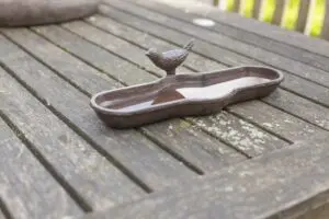 gietijzeren tafel vogelschaaltje in de vorm van een hart donkerbruin