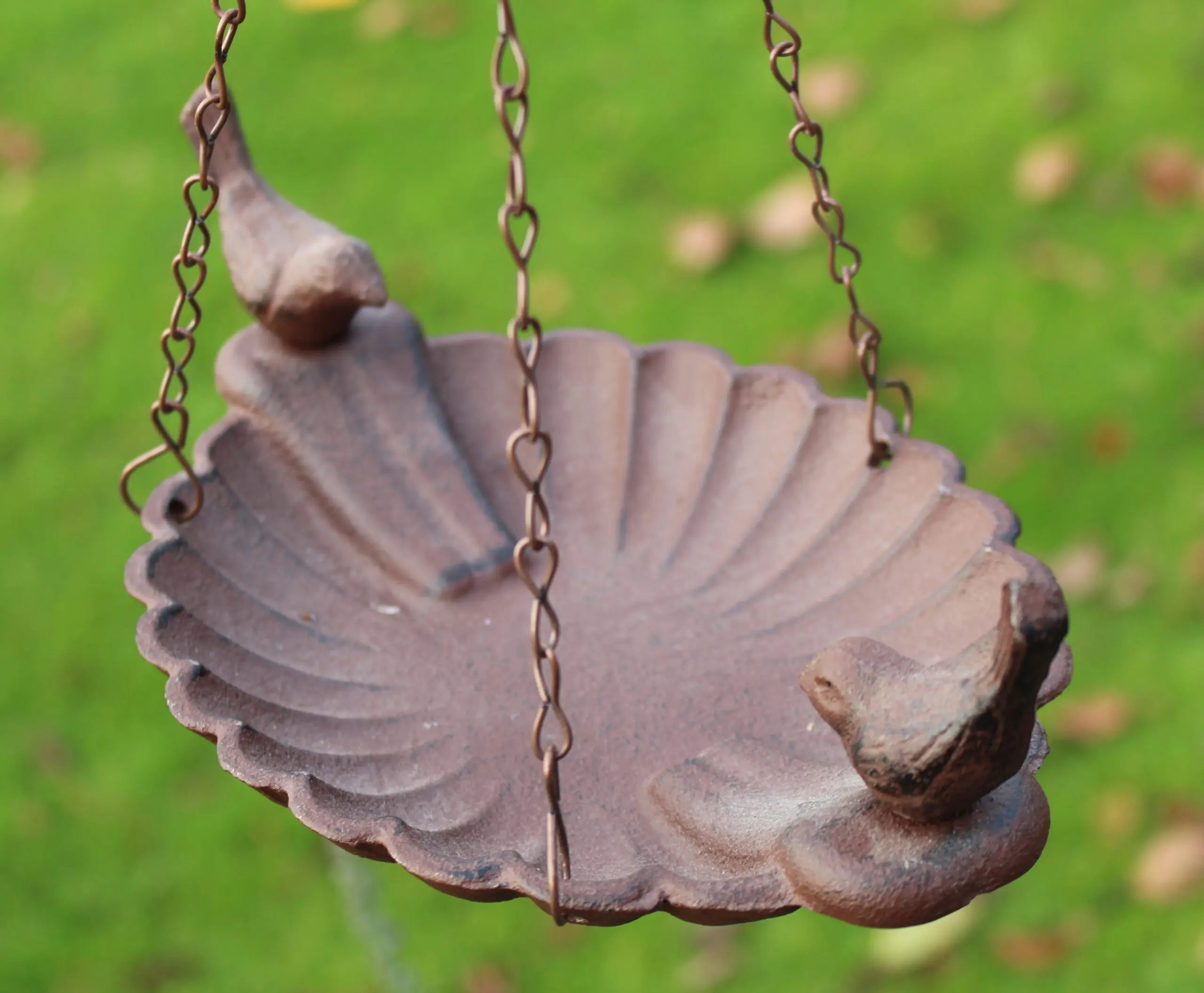 Vogelschaal, vogelbad hangend met ketting, gietijzer FB377