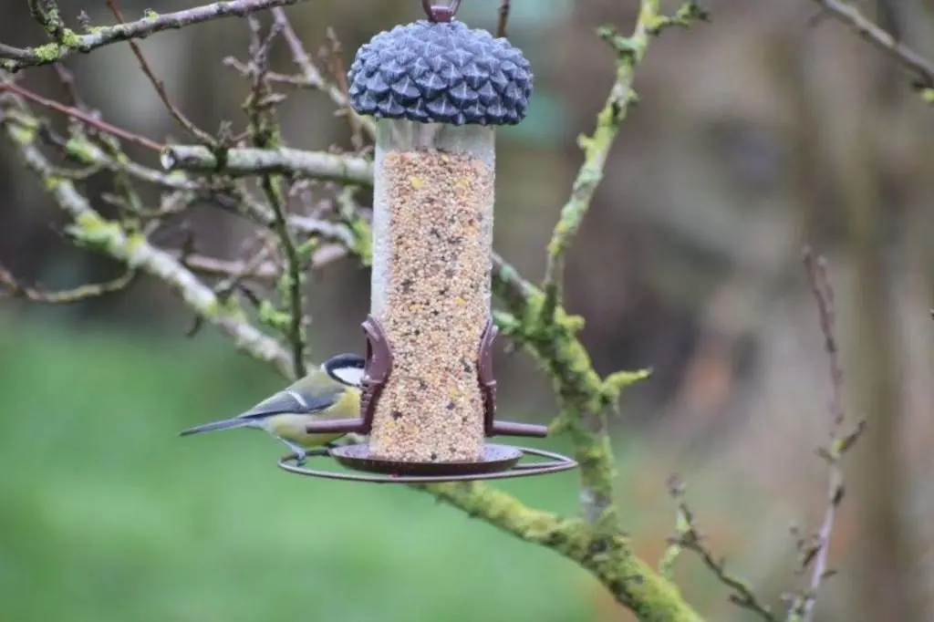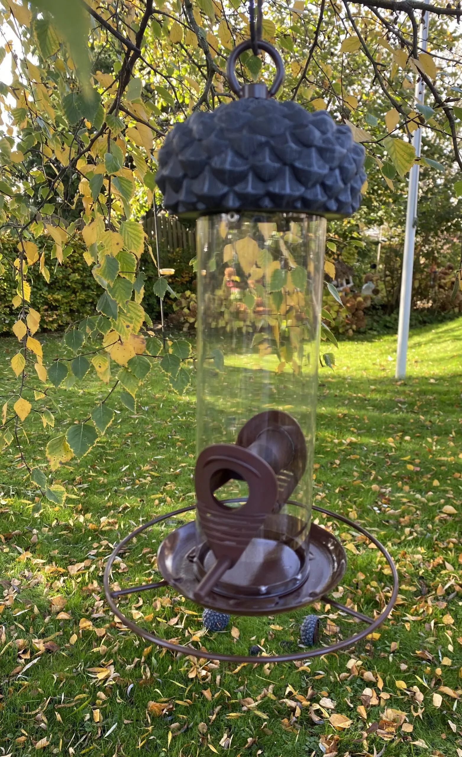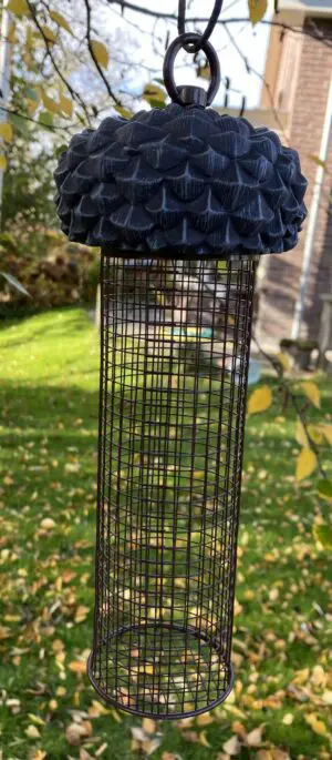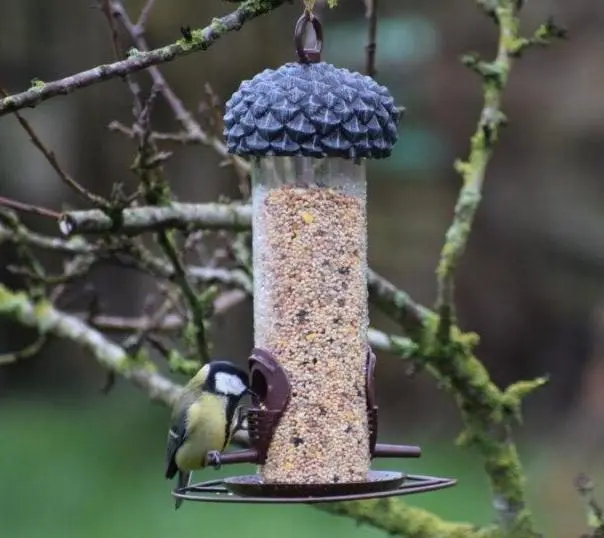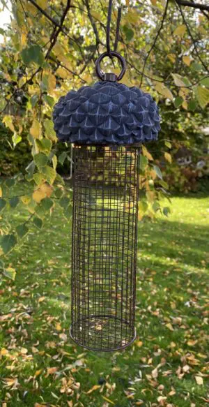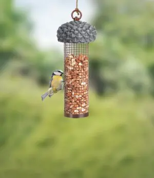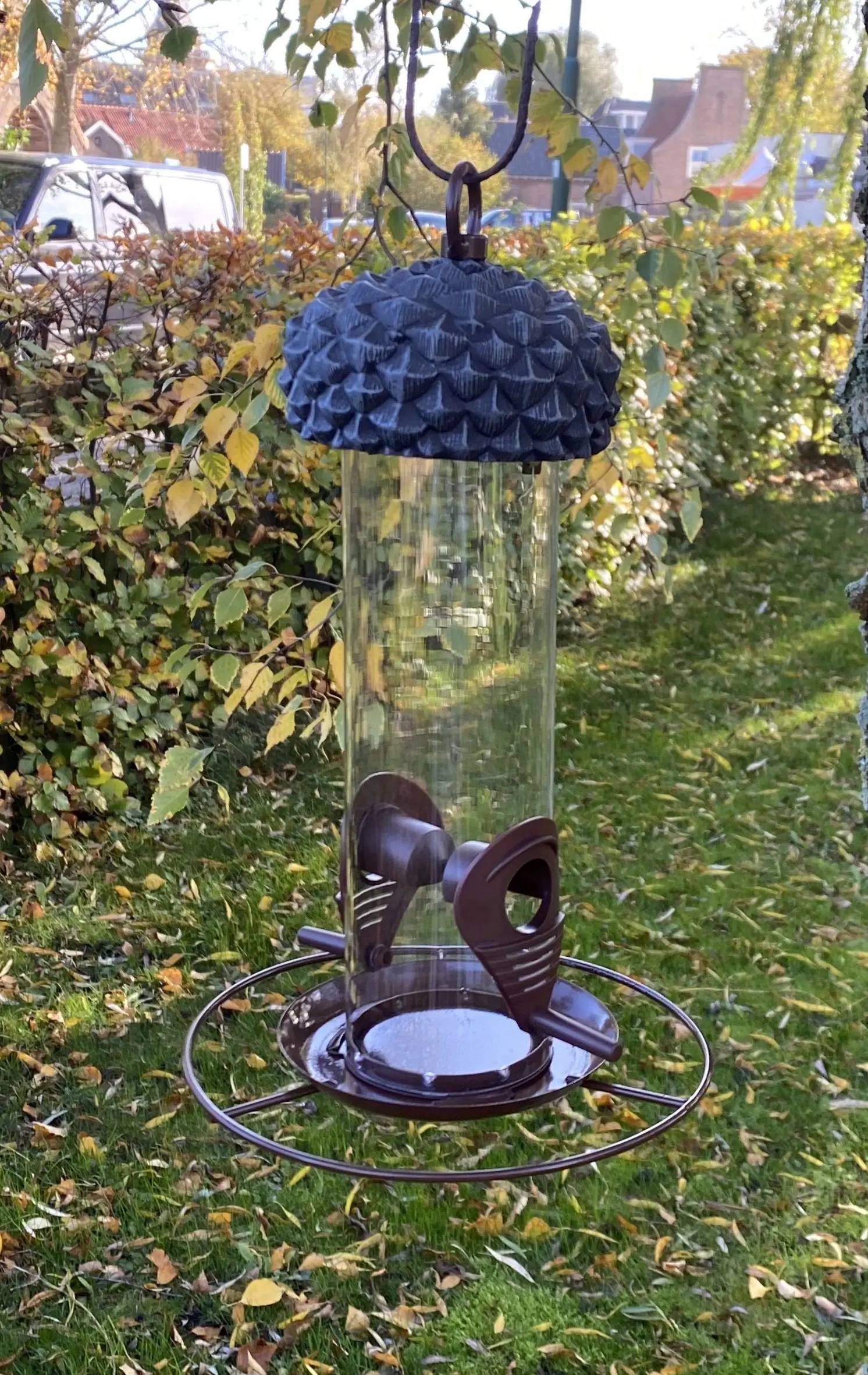 Kunststof silo voor vogelzaden model “Eikel” met ophangoog