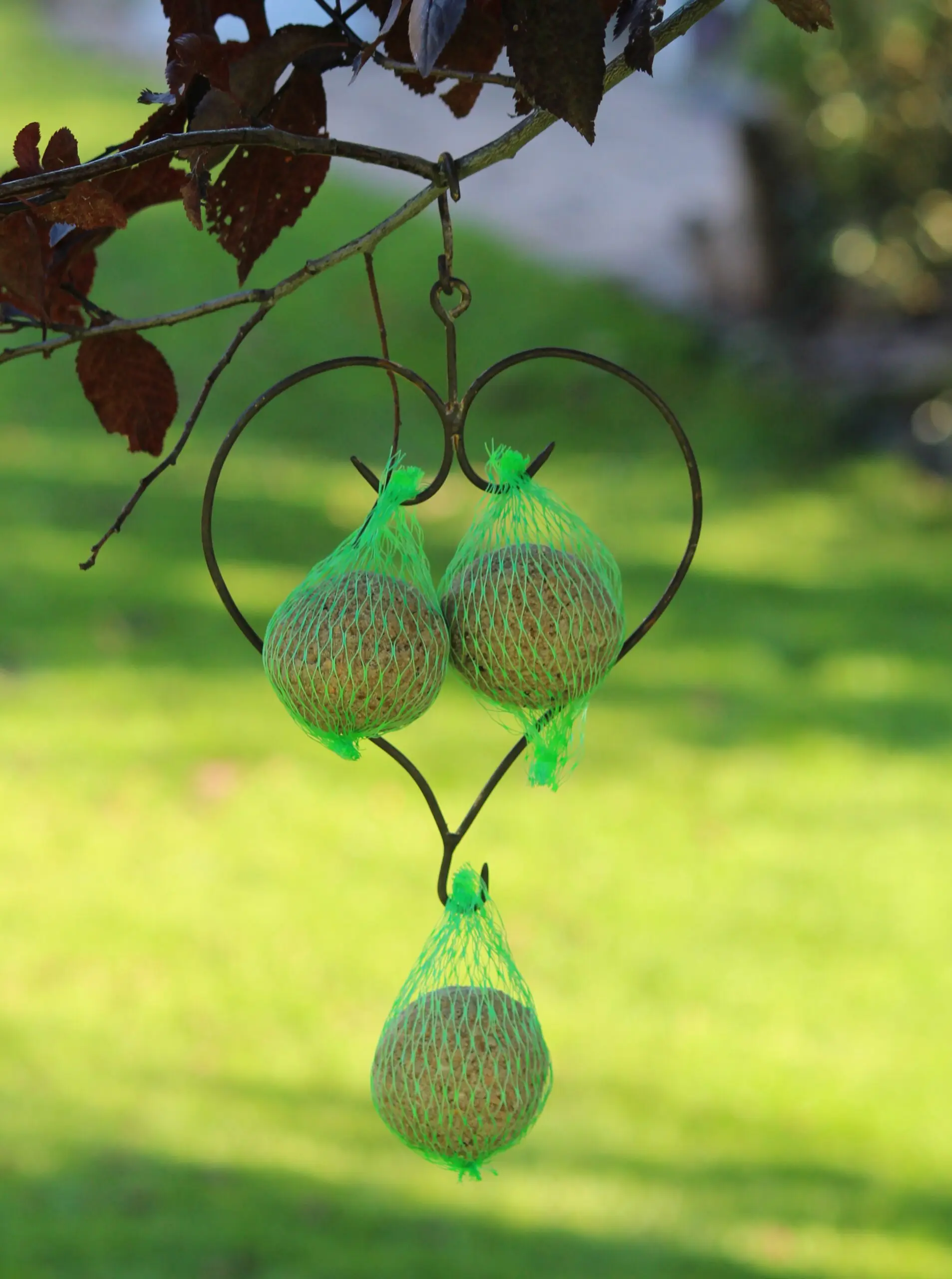 Vetbolhanger, vogelvoerhanger hart met 3 haken, metaal VH100