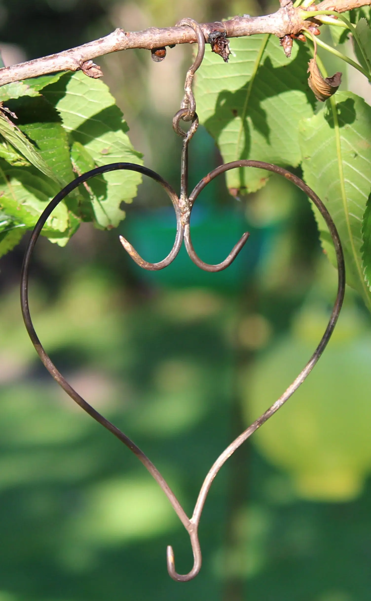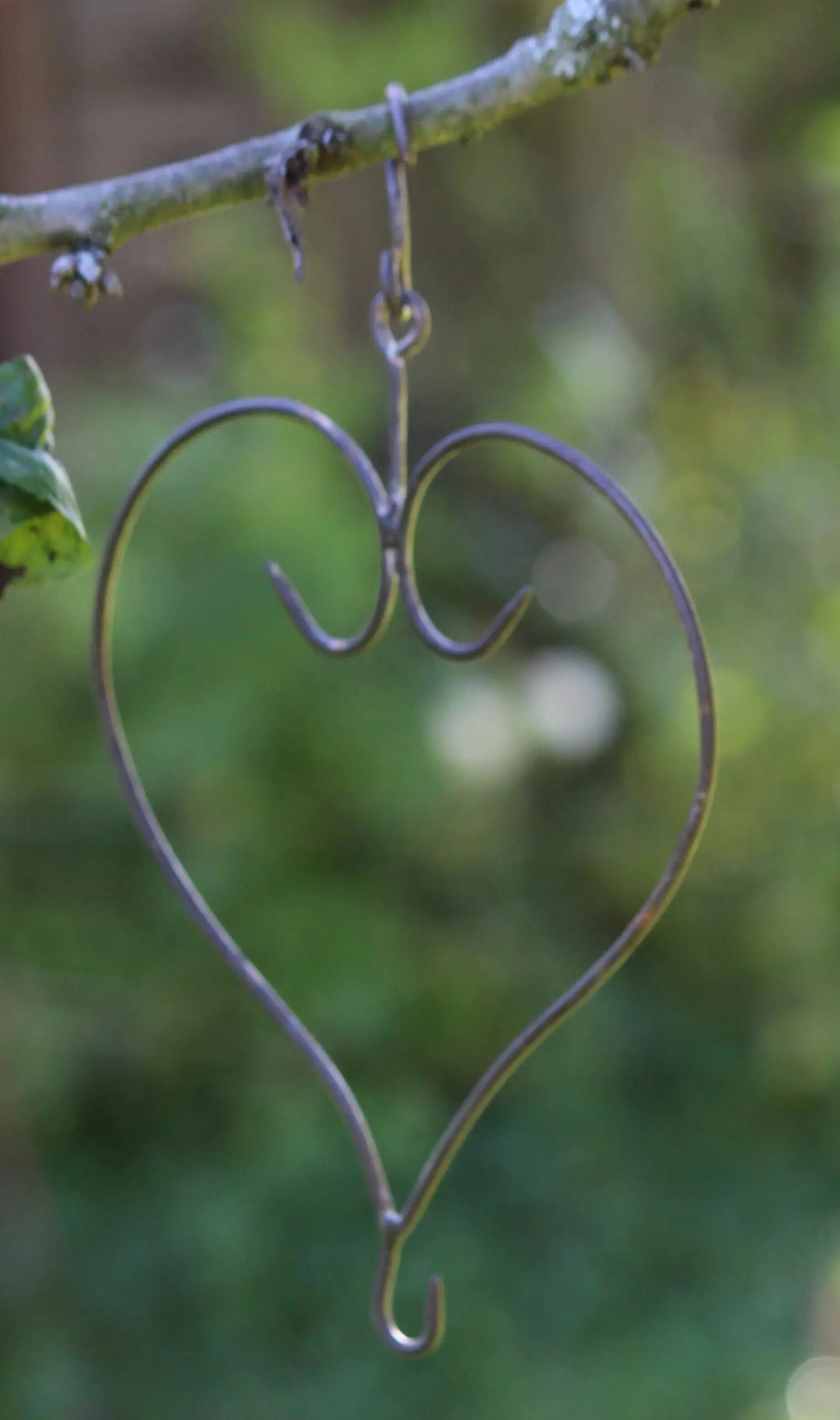Het heeft binnenin het hart 2 ruime haken en aan onderzijde 1 haak, waaraan vogelvoer gehangen kan worden.