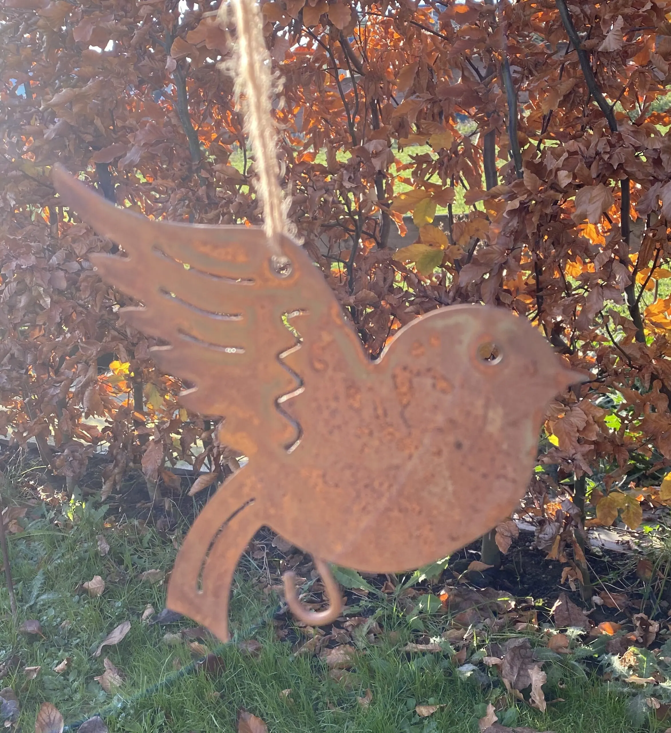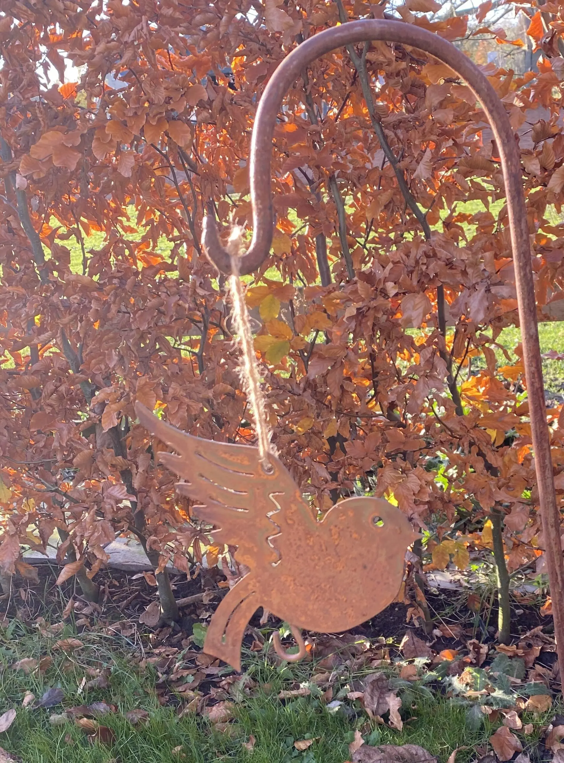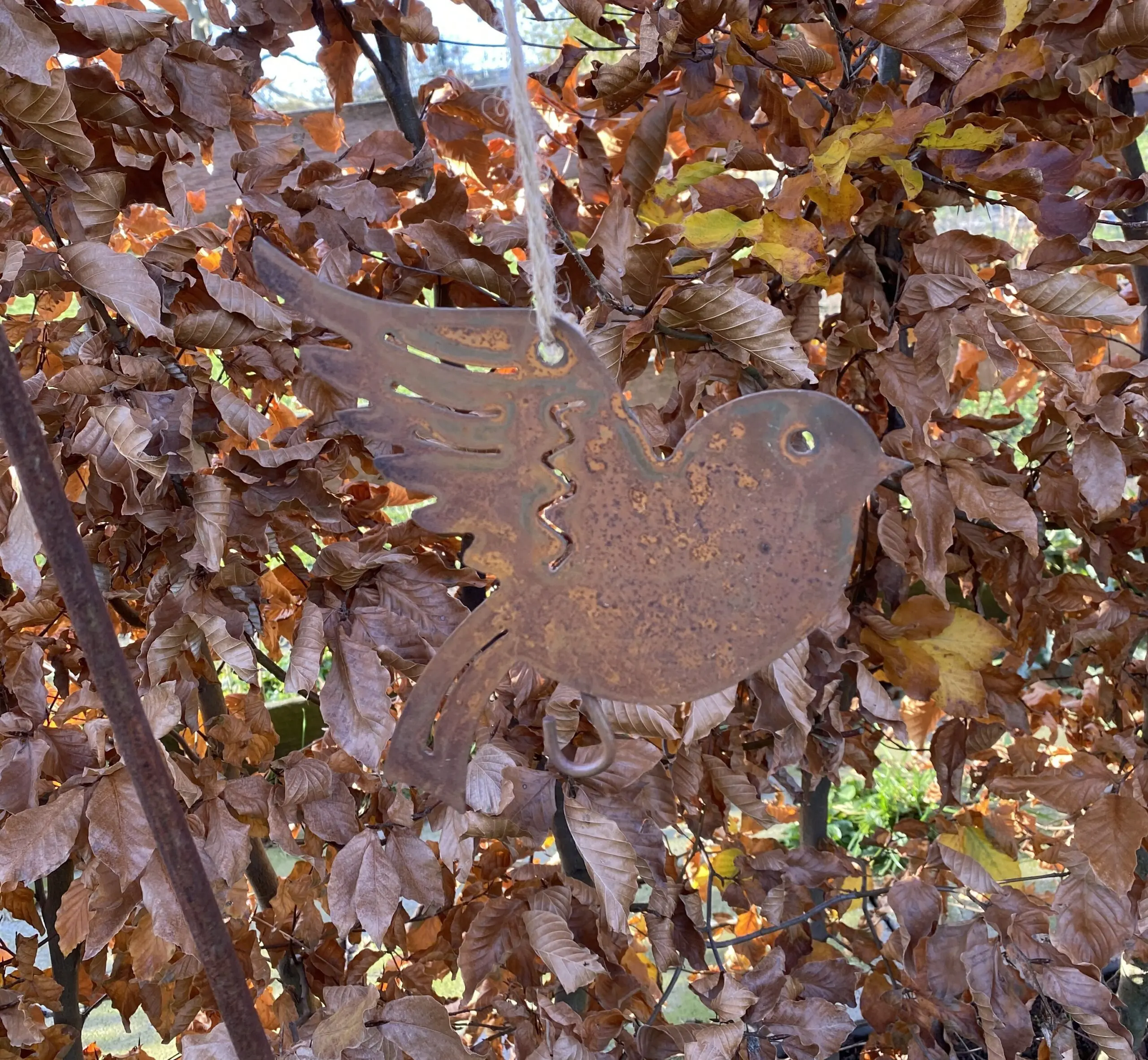 roestige vogel van metaal als vetbolhanger