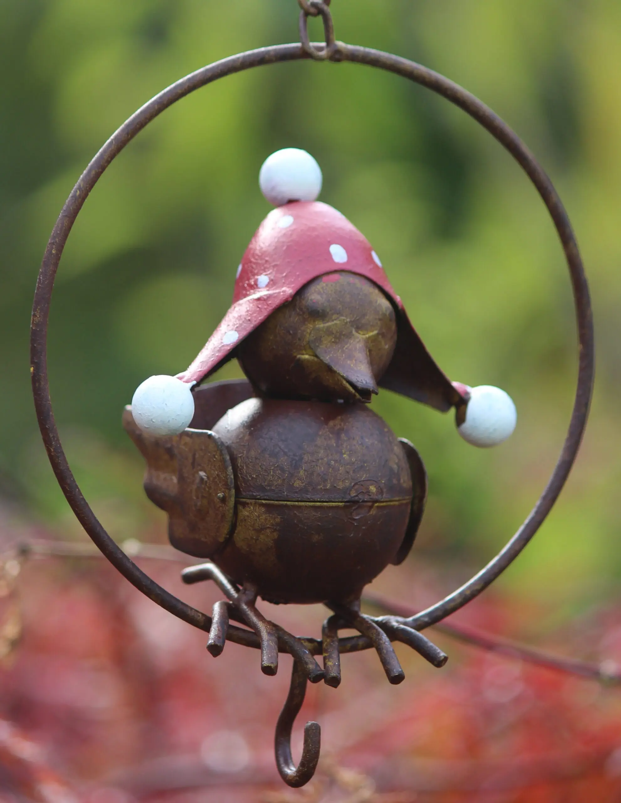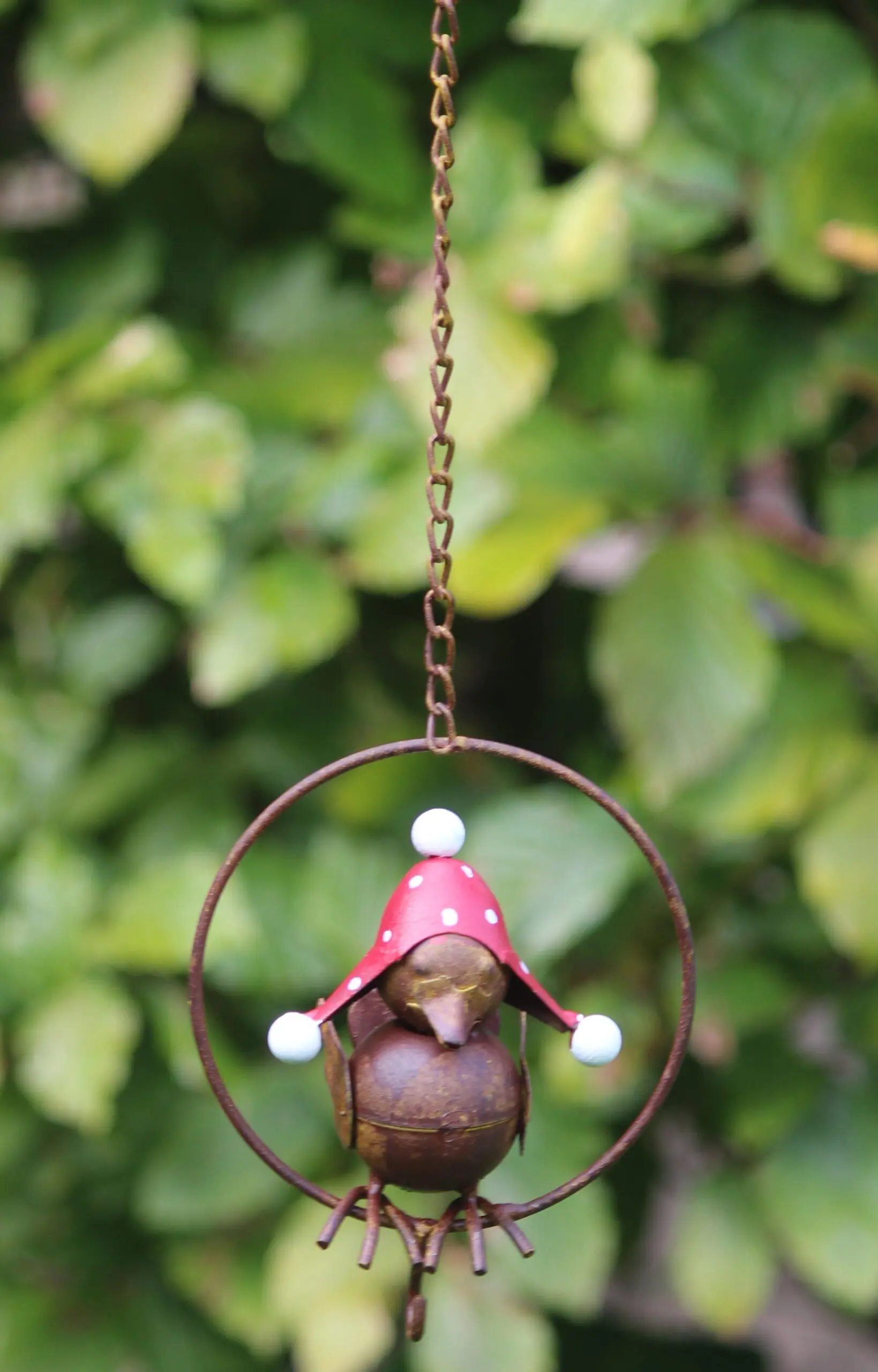 Vogelvoerhanger vogel met stippel muts, metaal VH230A