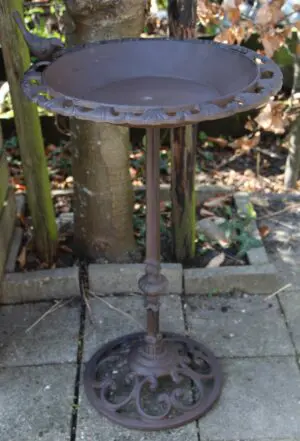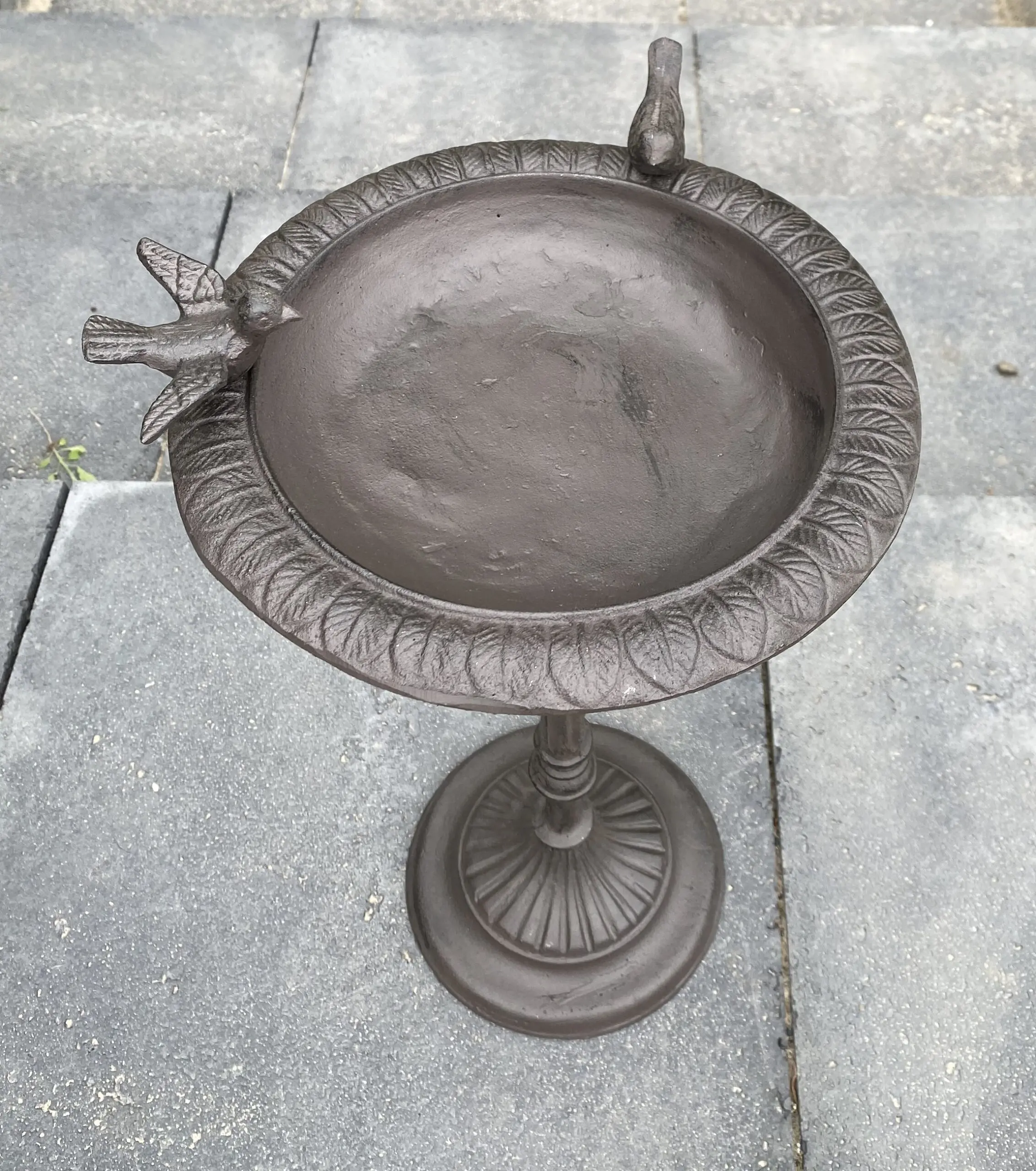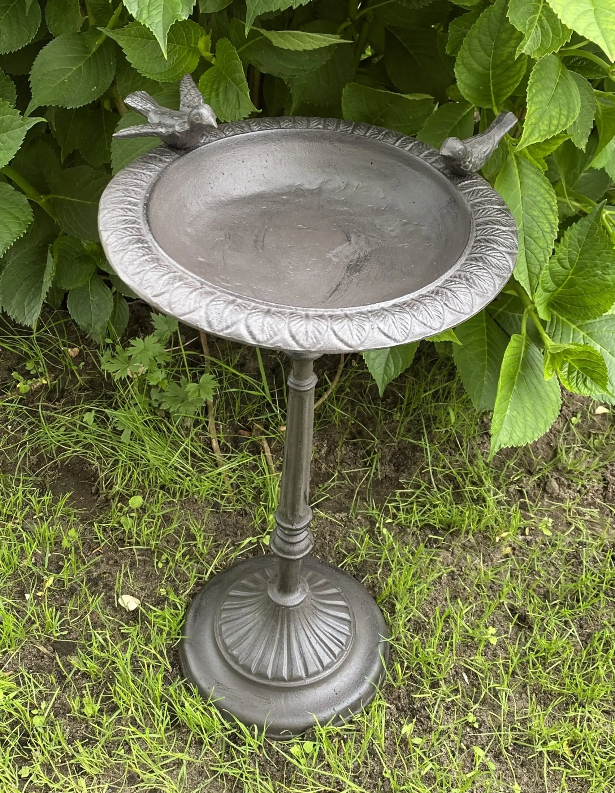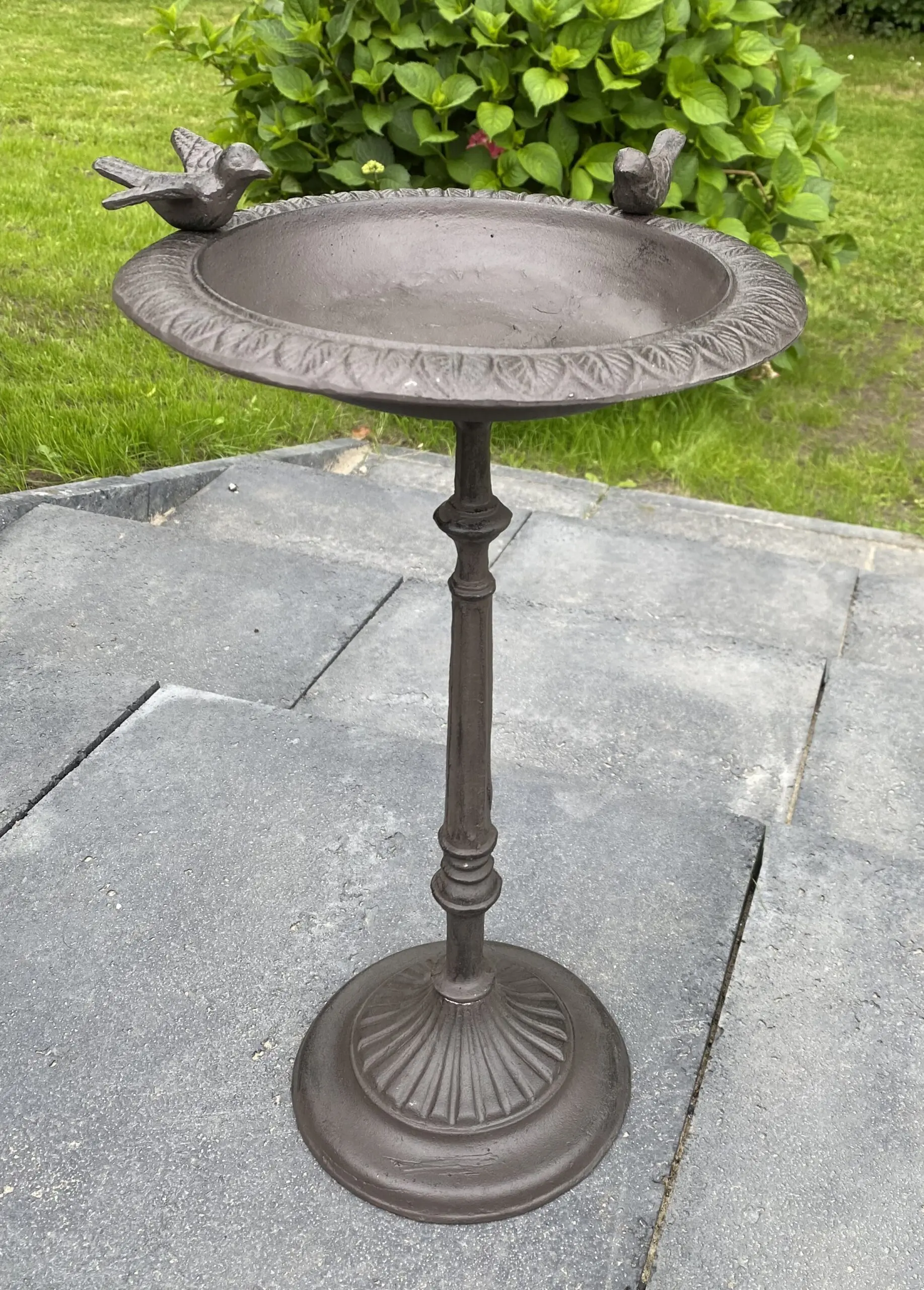 gietijzeren vogelschaal op hogere voet donkerbruin