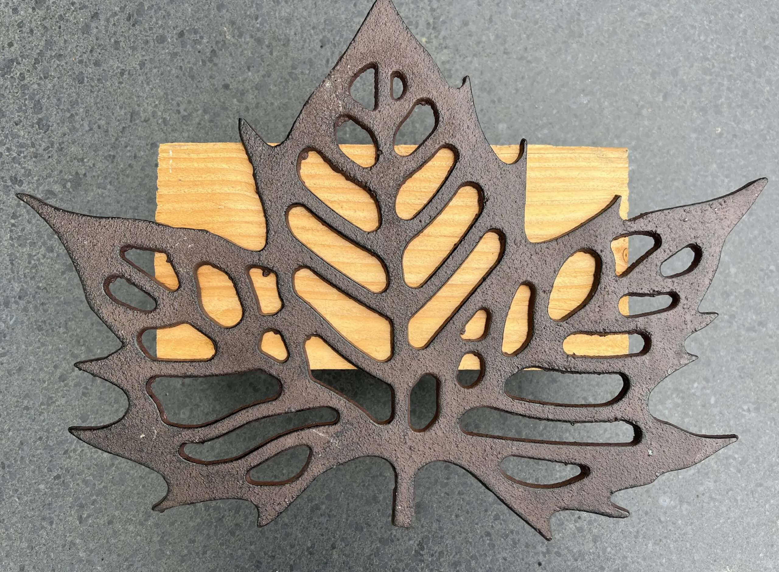 gietijzeren staptegel in de vorm van een esdoornblad bruin