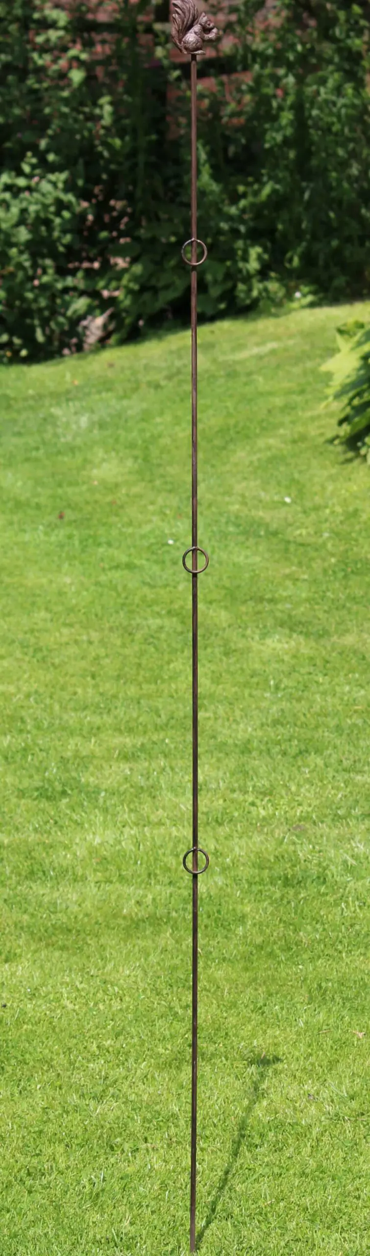 metalen plantensteun 175cm met gietijzeren eekhoorn en 3 ogen donkerbruin