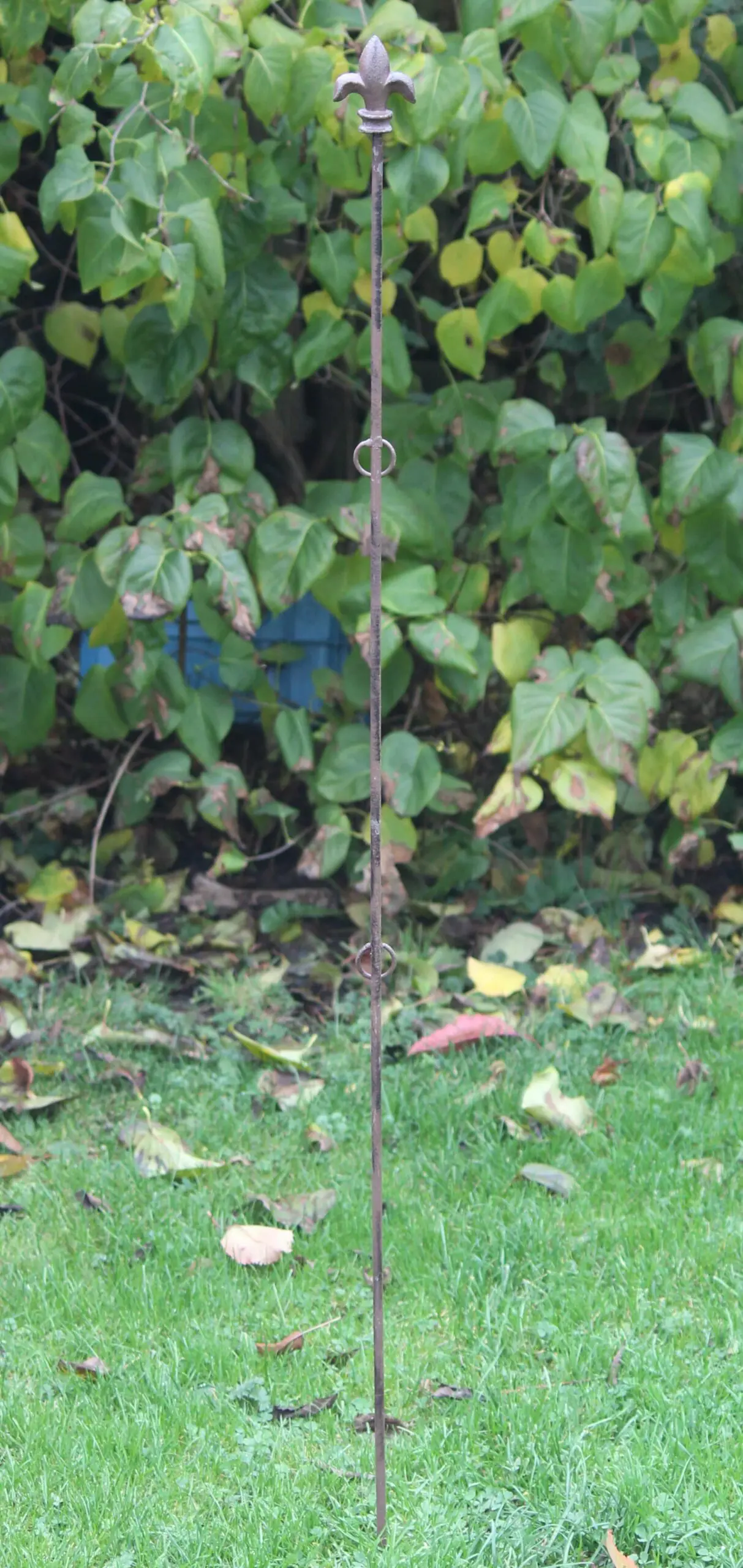 metalen plantensteun met 2 ogen en een Franse lelie van gietijzer 125cm