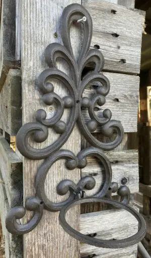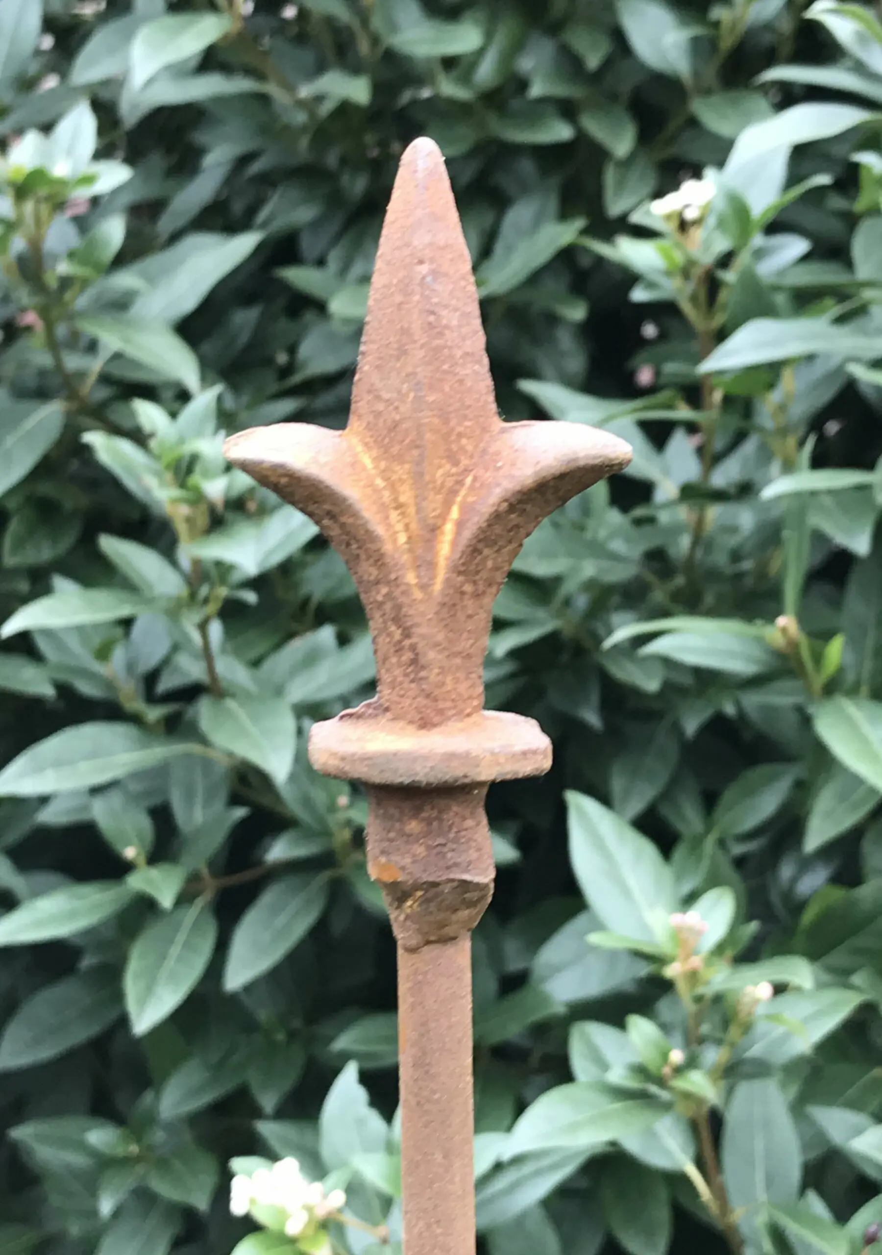 Op de top treft u een driehoekige versieringsknop, een gietijzeren Franse lelie.