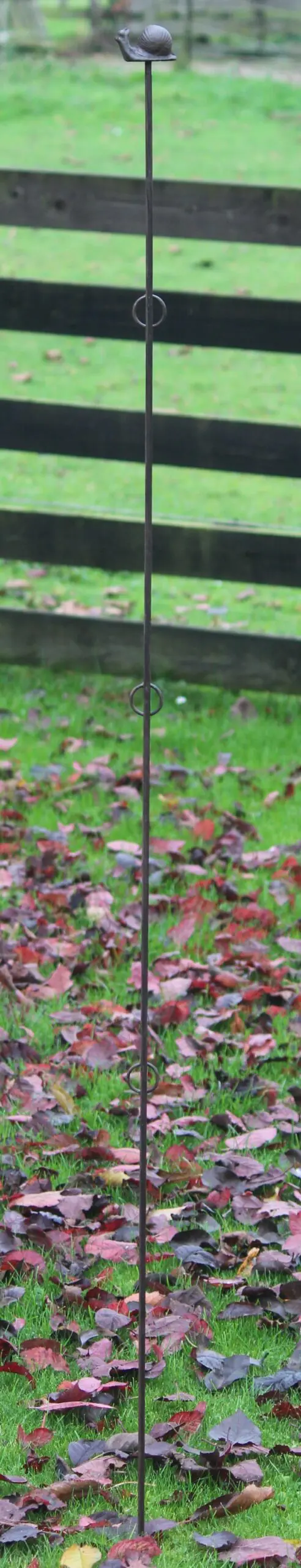 metalen plantensteun 175cm met gietijzeren slak en 3 ogen donkerbruin