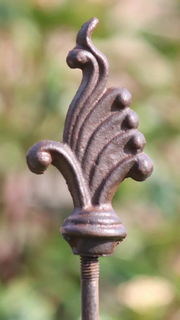 Deze plantensteun van gietijzer is bedoeld om uw planten mee op te binden. De kleur is