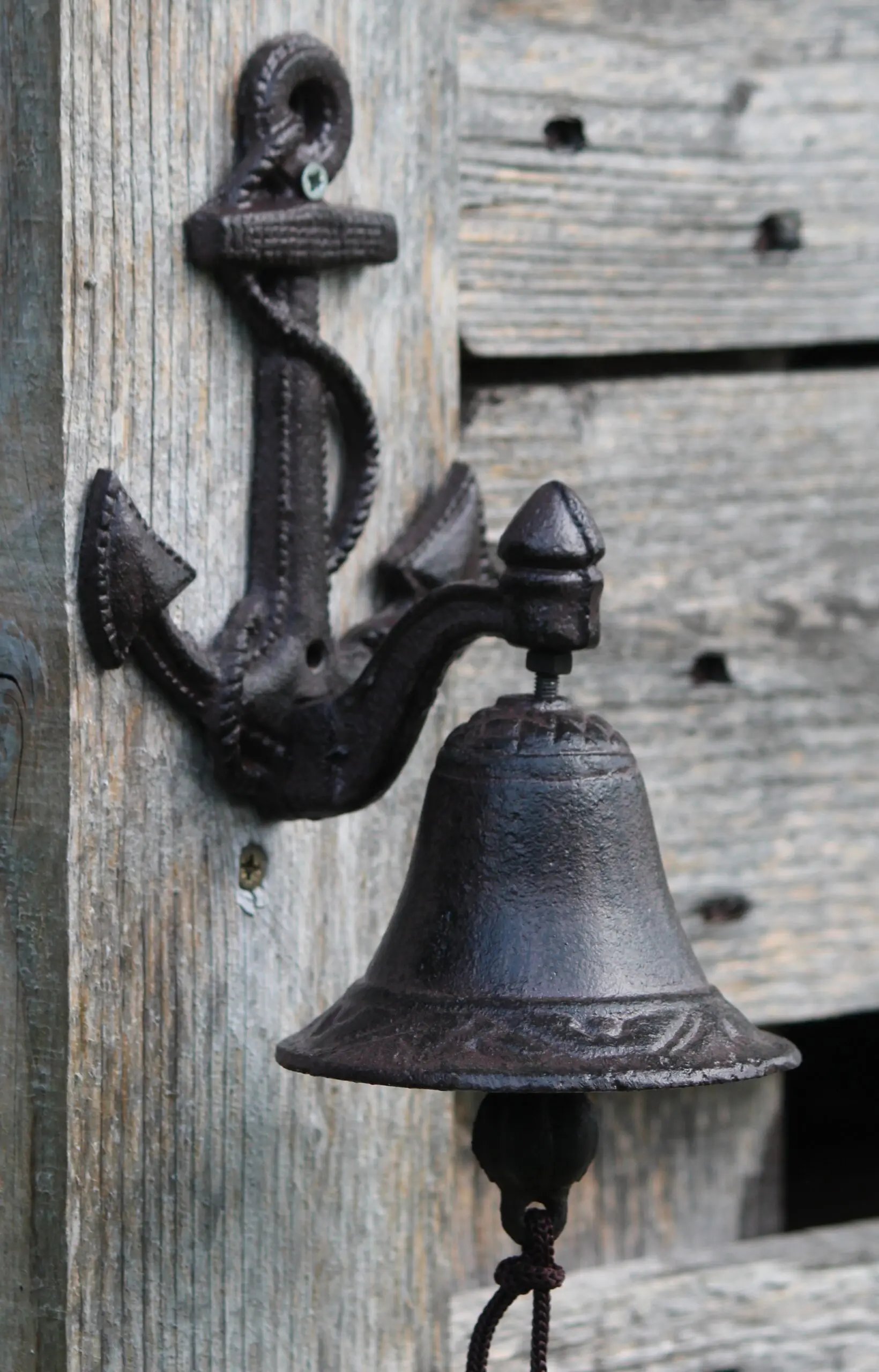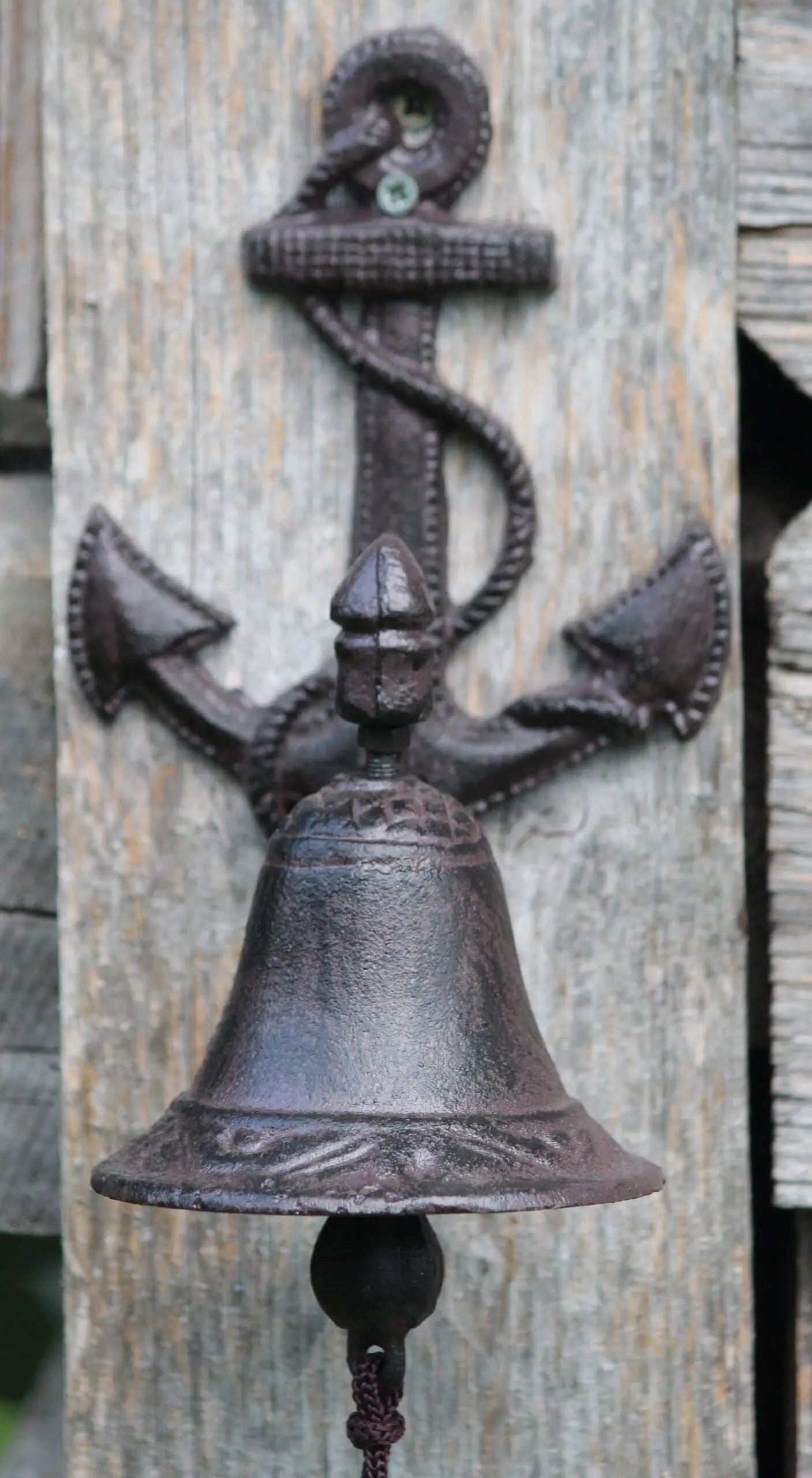 Mooie sierlijke gietijzeren deurbel met een afbeelding van een anker.