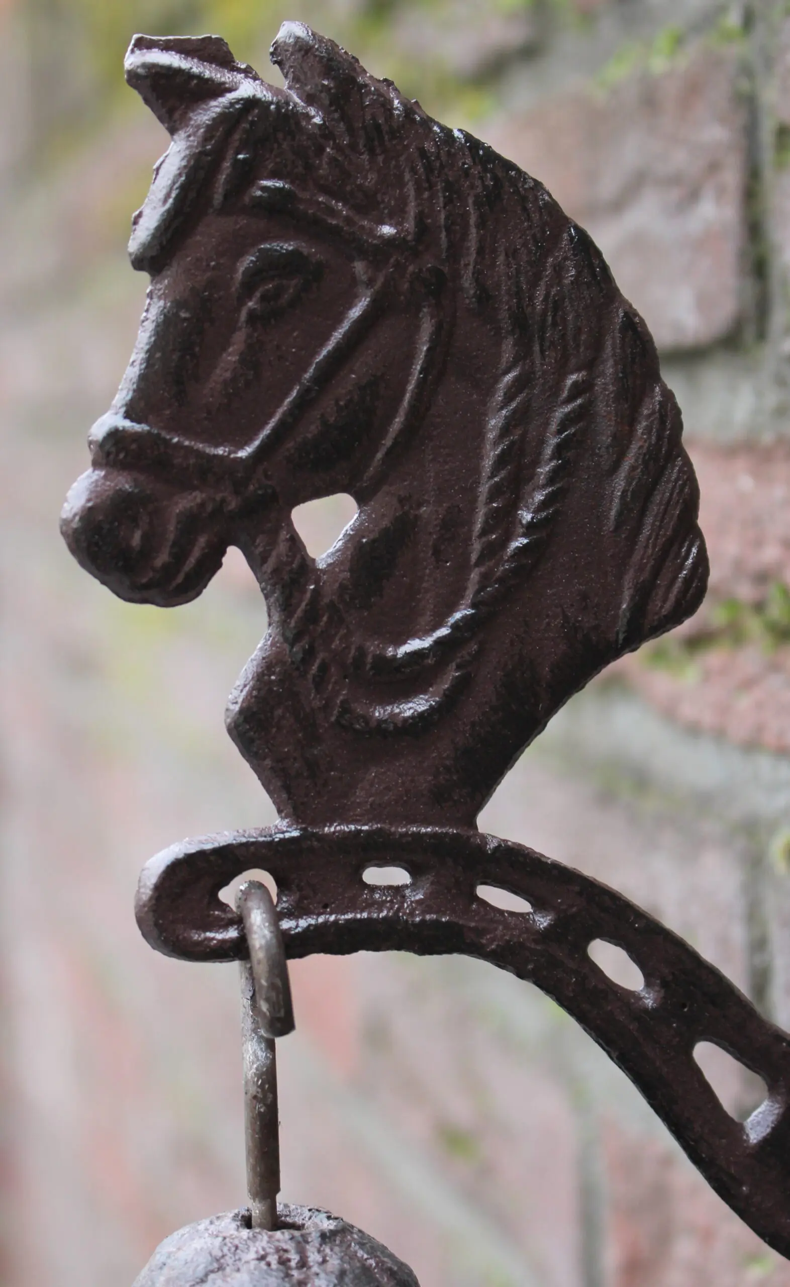 Het hoofd is bevestigd op een stukje hoefijzer.
