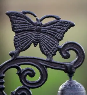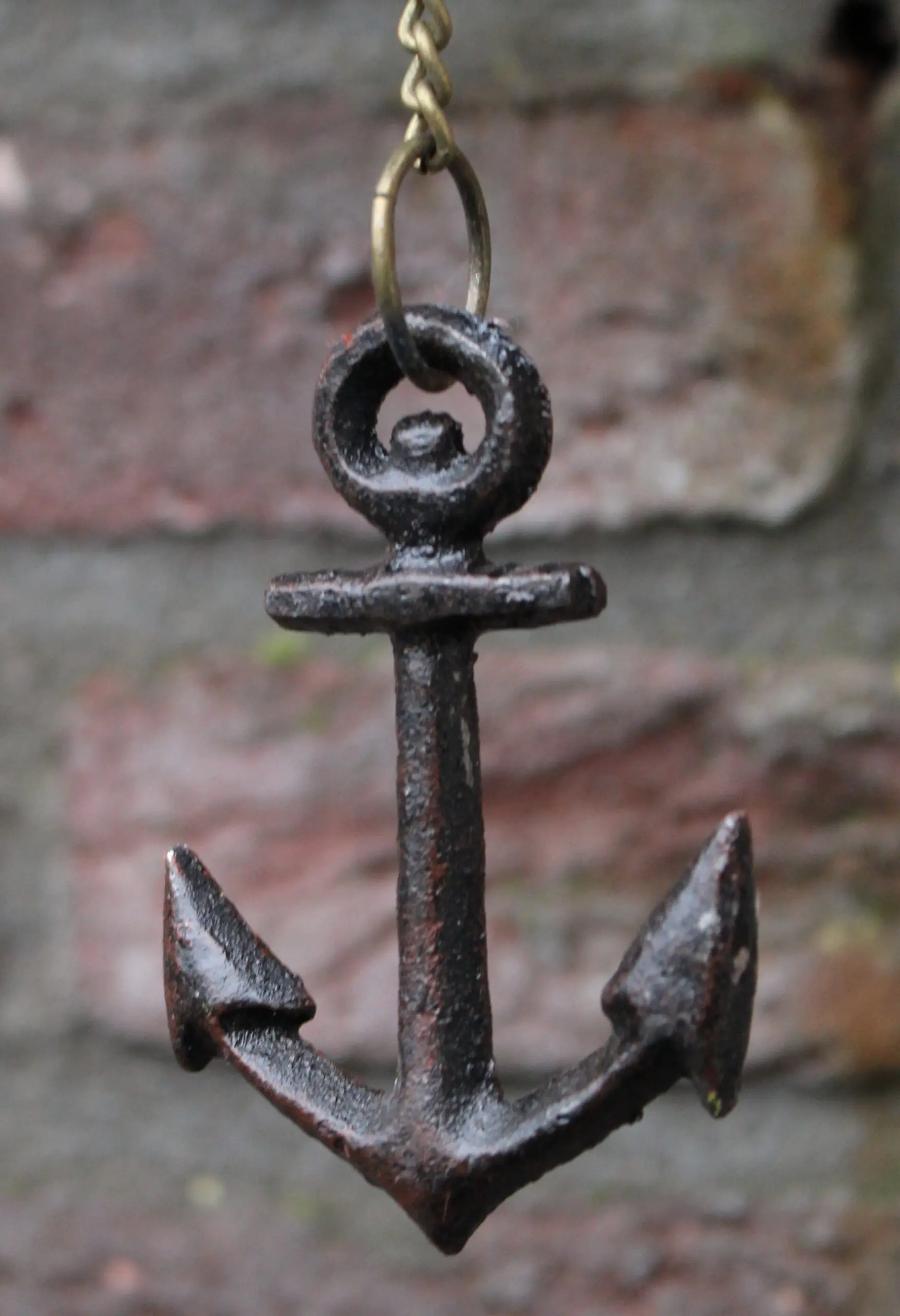 Aan de klepel zit een ketting met daaraan een gietijzeren anker.