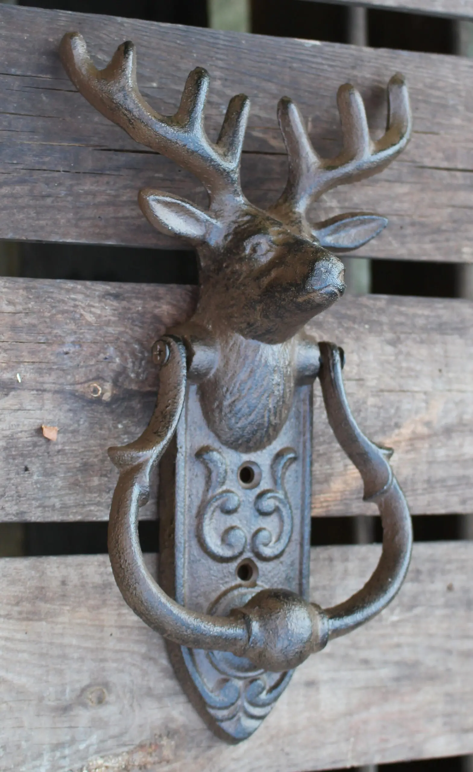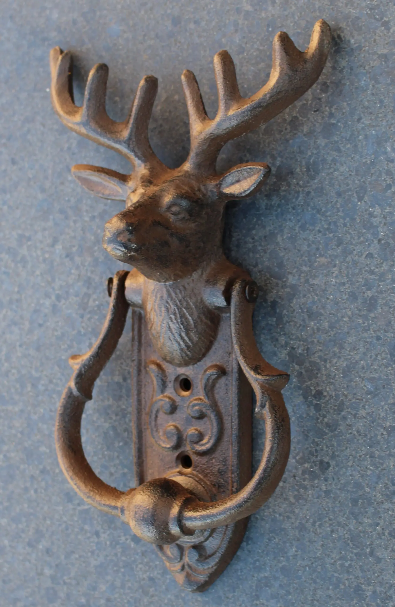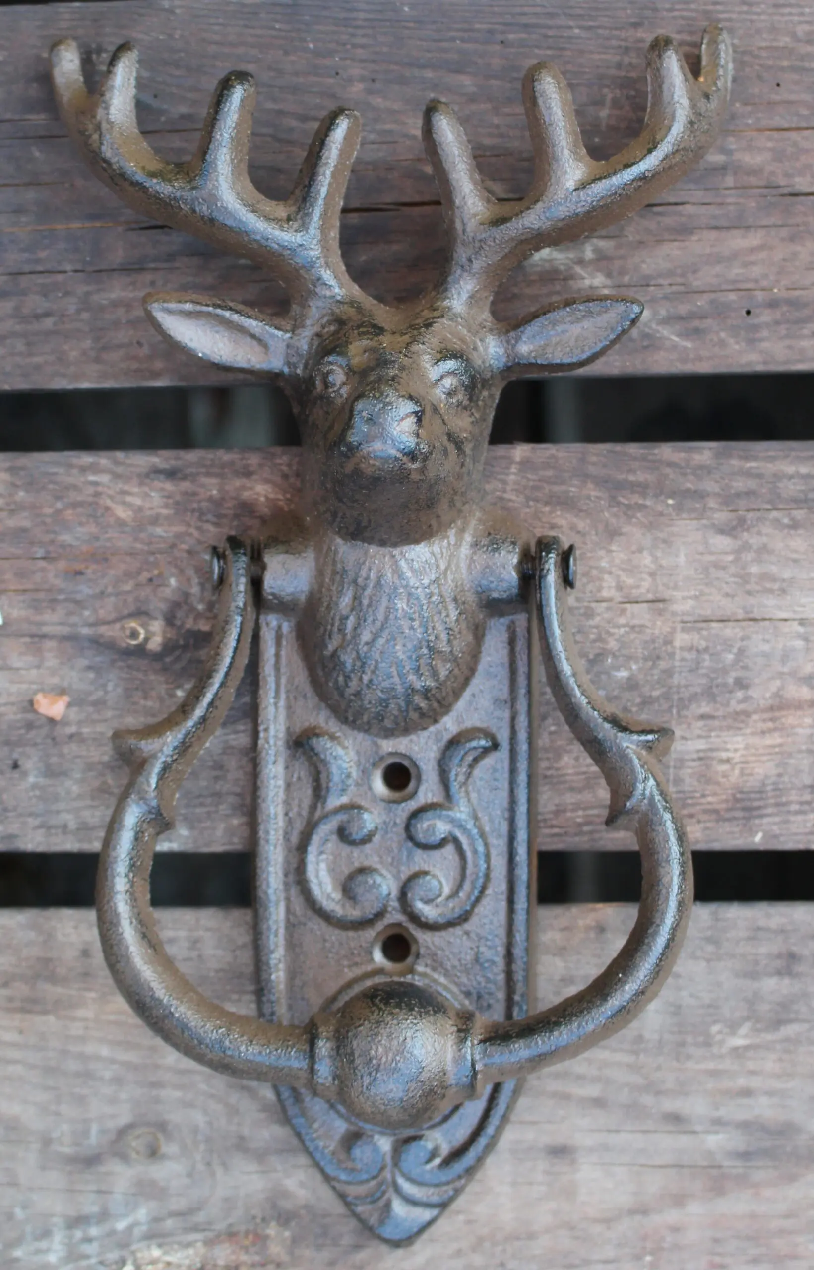 Mooie gietijzeren deurklopper in de vorm van een hert met gewei.
